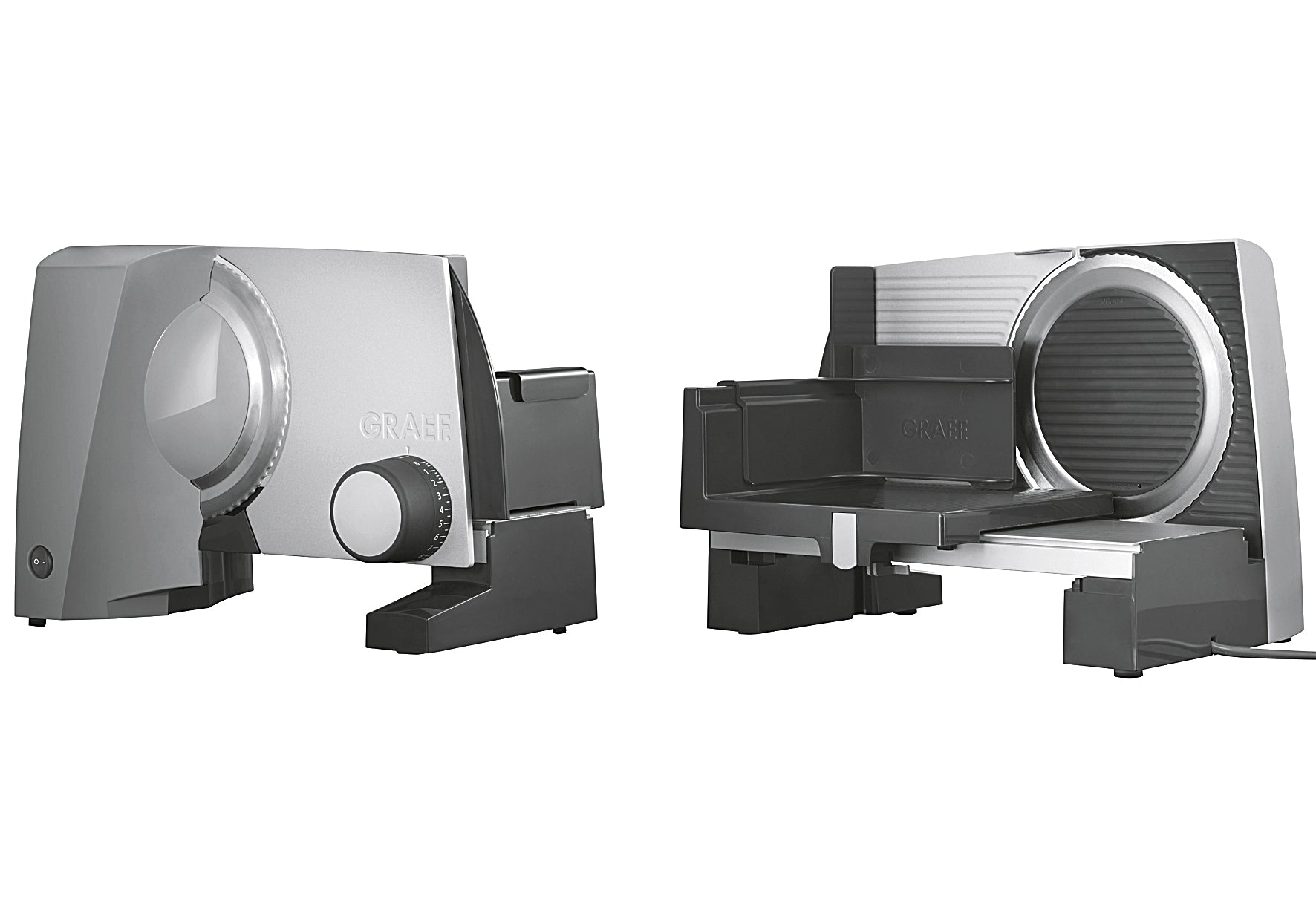 - Edler Einstiegs-Allesschneider "Made in Germany", Metallmaschine mit rutschfestem Standfuß, sichere Handhabung, kompakte Abmessungen für jede Küche geeignet, 45-170 Watt Eco Power Motion Motor für höchste Laufruhe bei konstanter Drehzahl, Edelstahl-Wellenschliffmesser mit Safety-Verschluss für schnellen und sicheren Messerwechsel: Ideal für Brot, Wurst oder Käse, Messerabdeckplatte für optimale Schneidergebnisse, Stabiler und leichtgängiger Schlitten mit Kindersicherung, Kabelfach