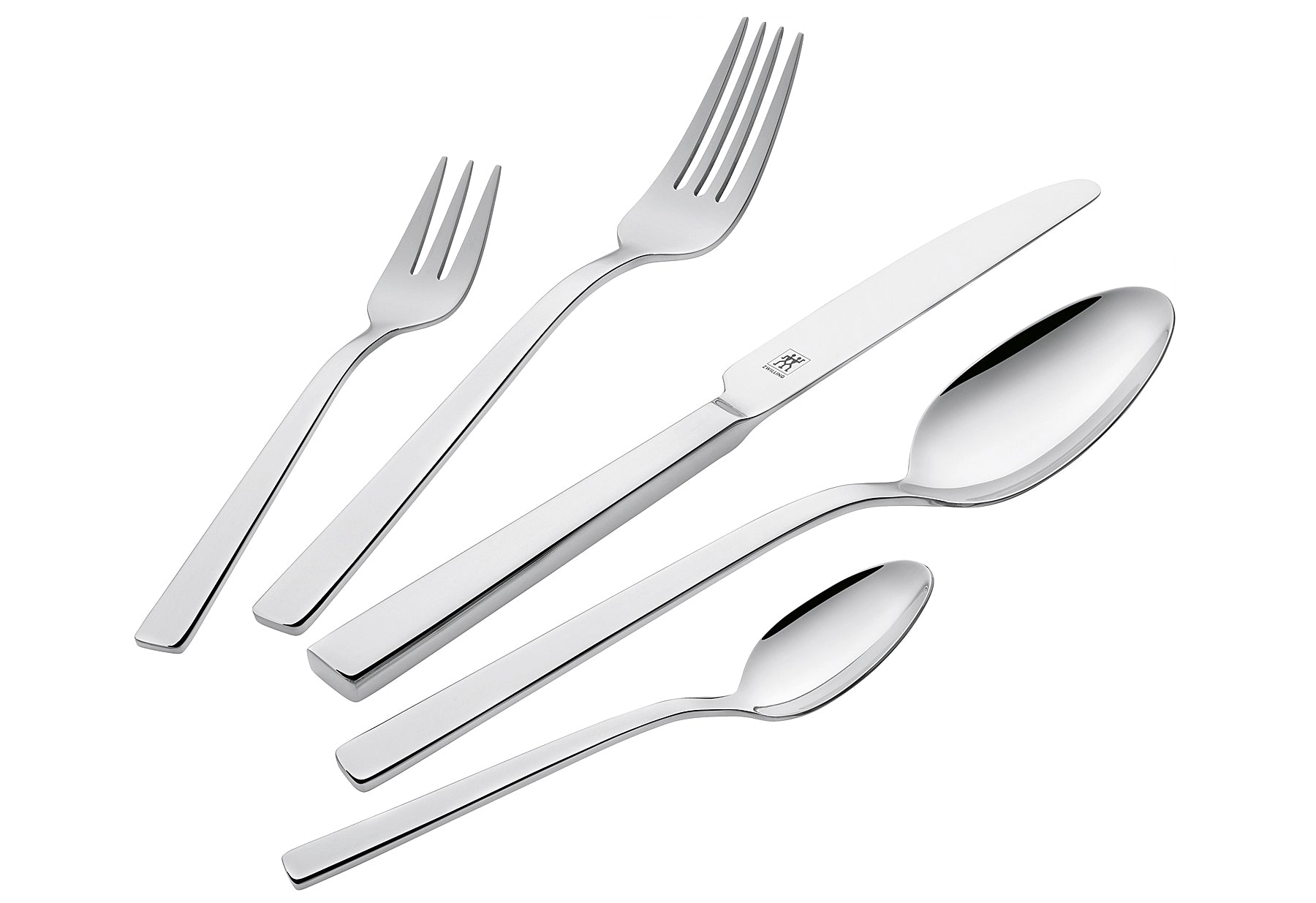 Edelstahl 18/10, für 6 Personen, Inhalt: je 6 x Menügabeln, Messer, Menülöffel, Kaffeelöffel und Kuchengabeln, spülmaschinengeeignet