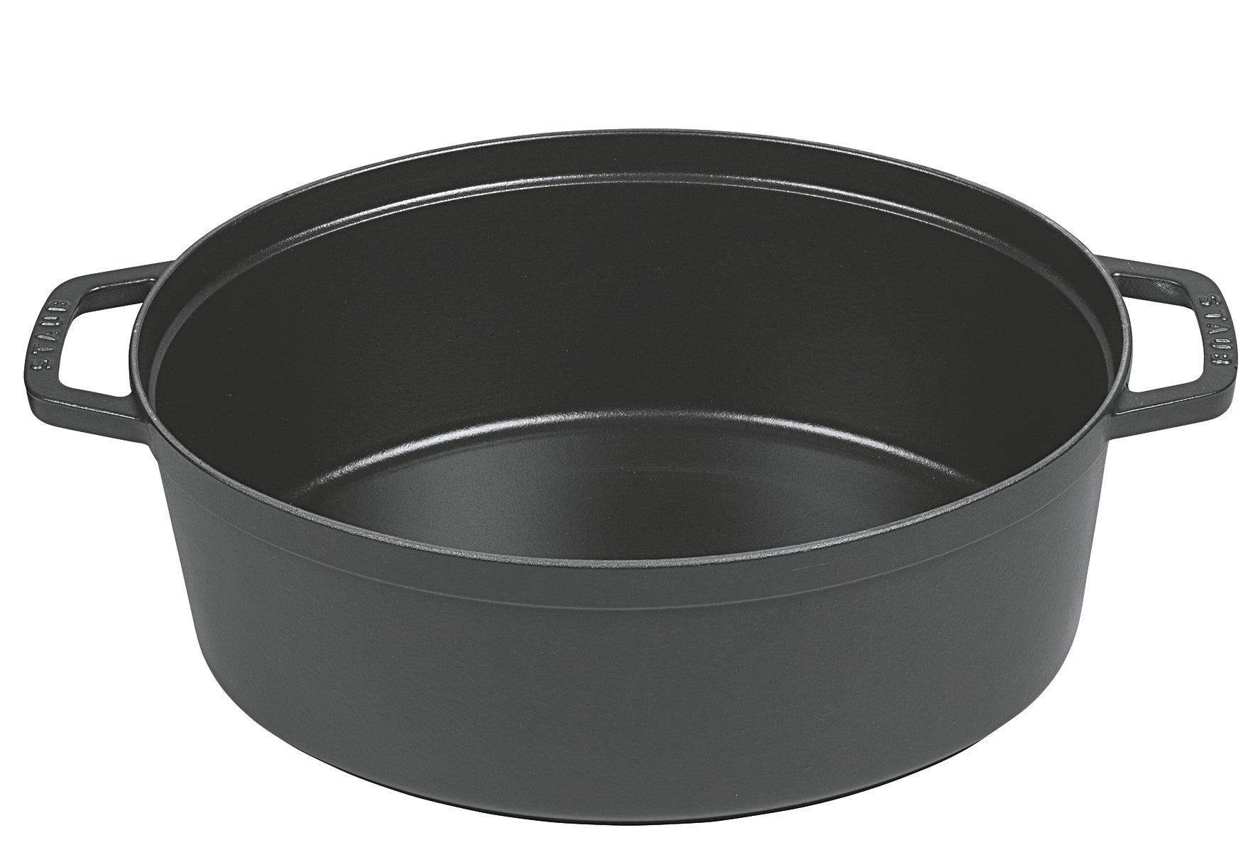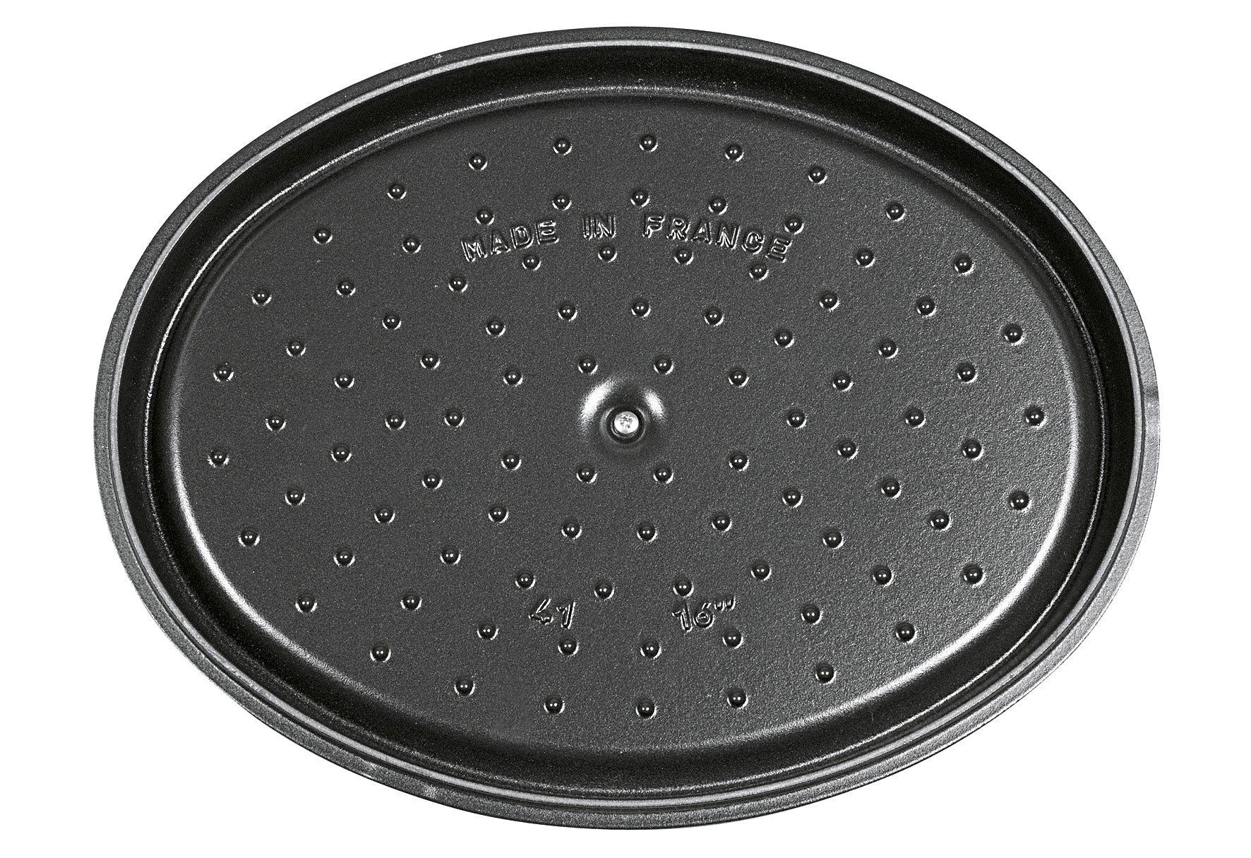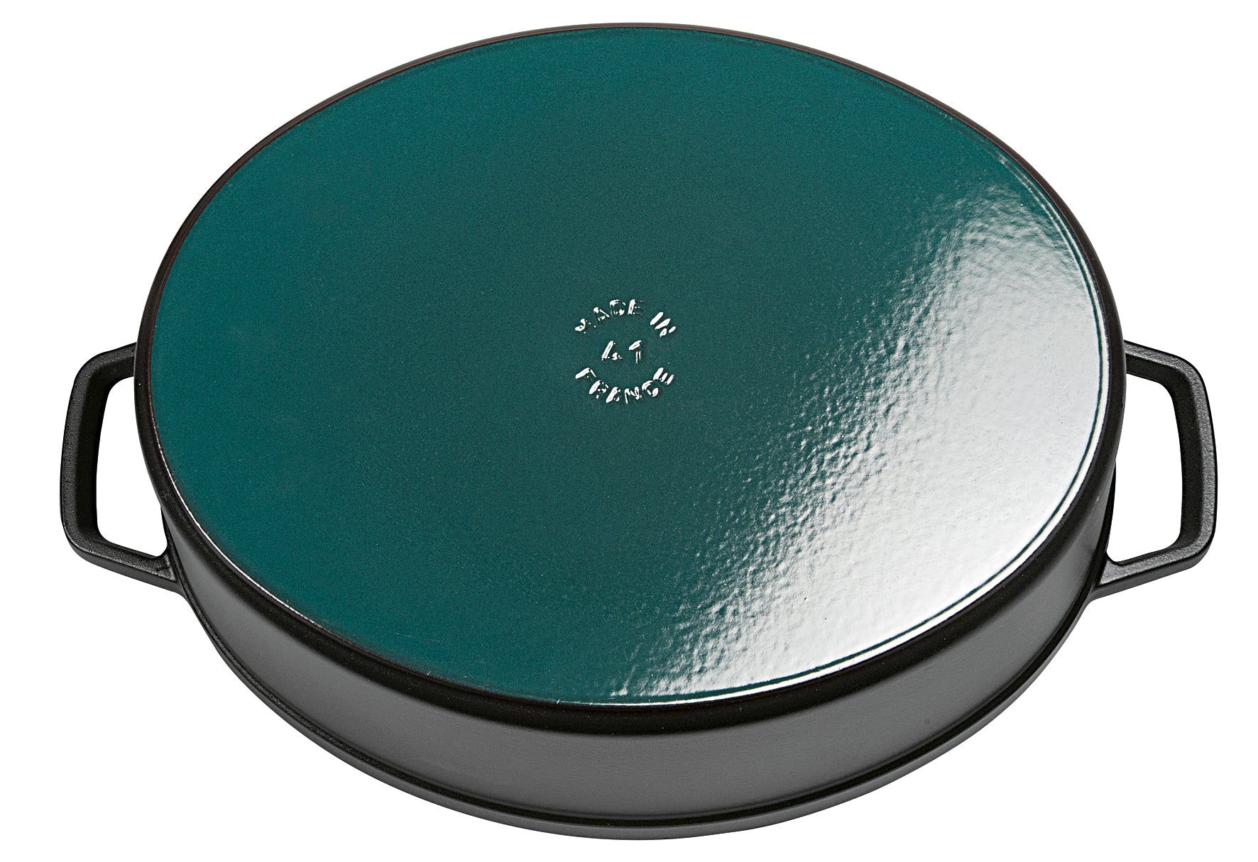 - Gusseisen, speichert Wärme und gibt sie langsam und gleichmäßig wieder ab, sehr gut geeignet für schonendes und gesundes Garen, innen matt-schwarz emailliert, spülmaschinengeeignet, für alle Herdarten inkl. Induktion geeignet