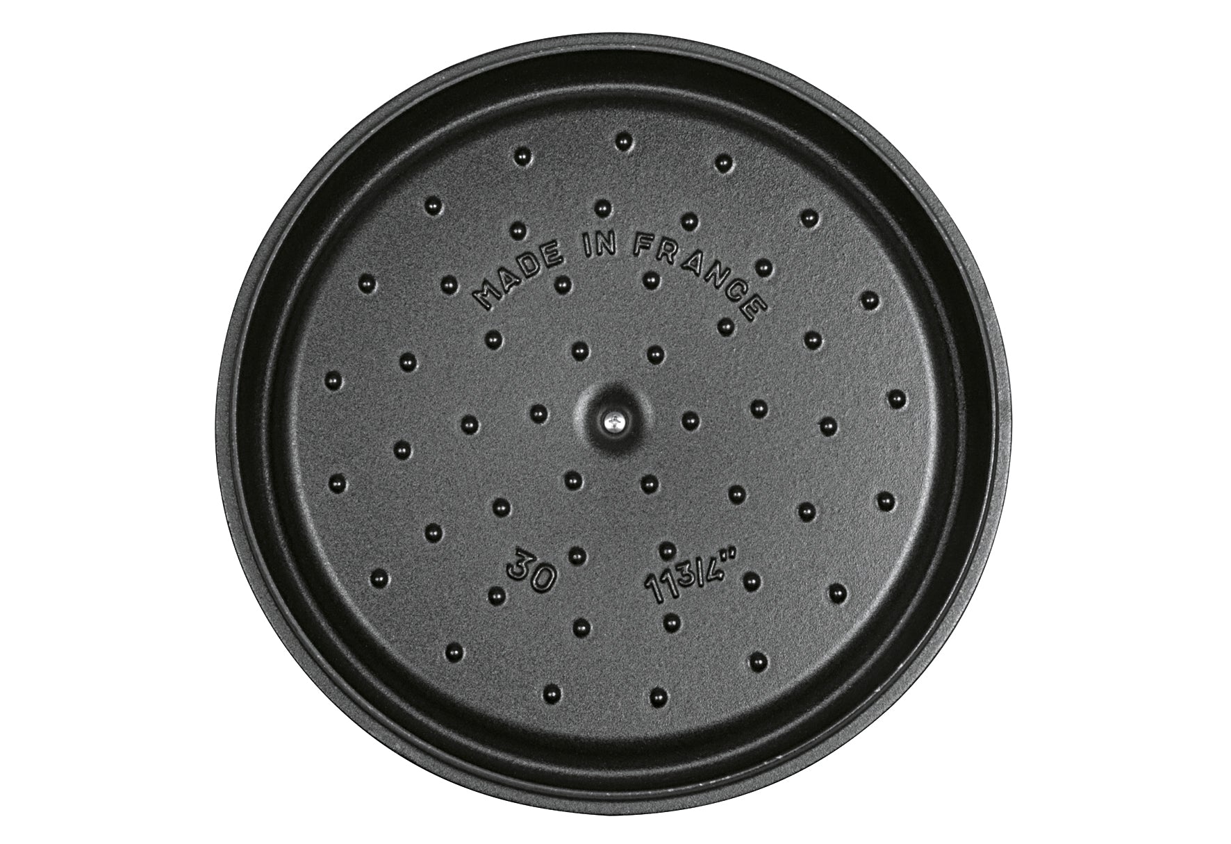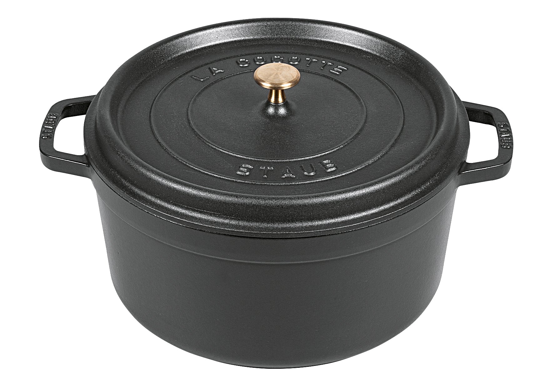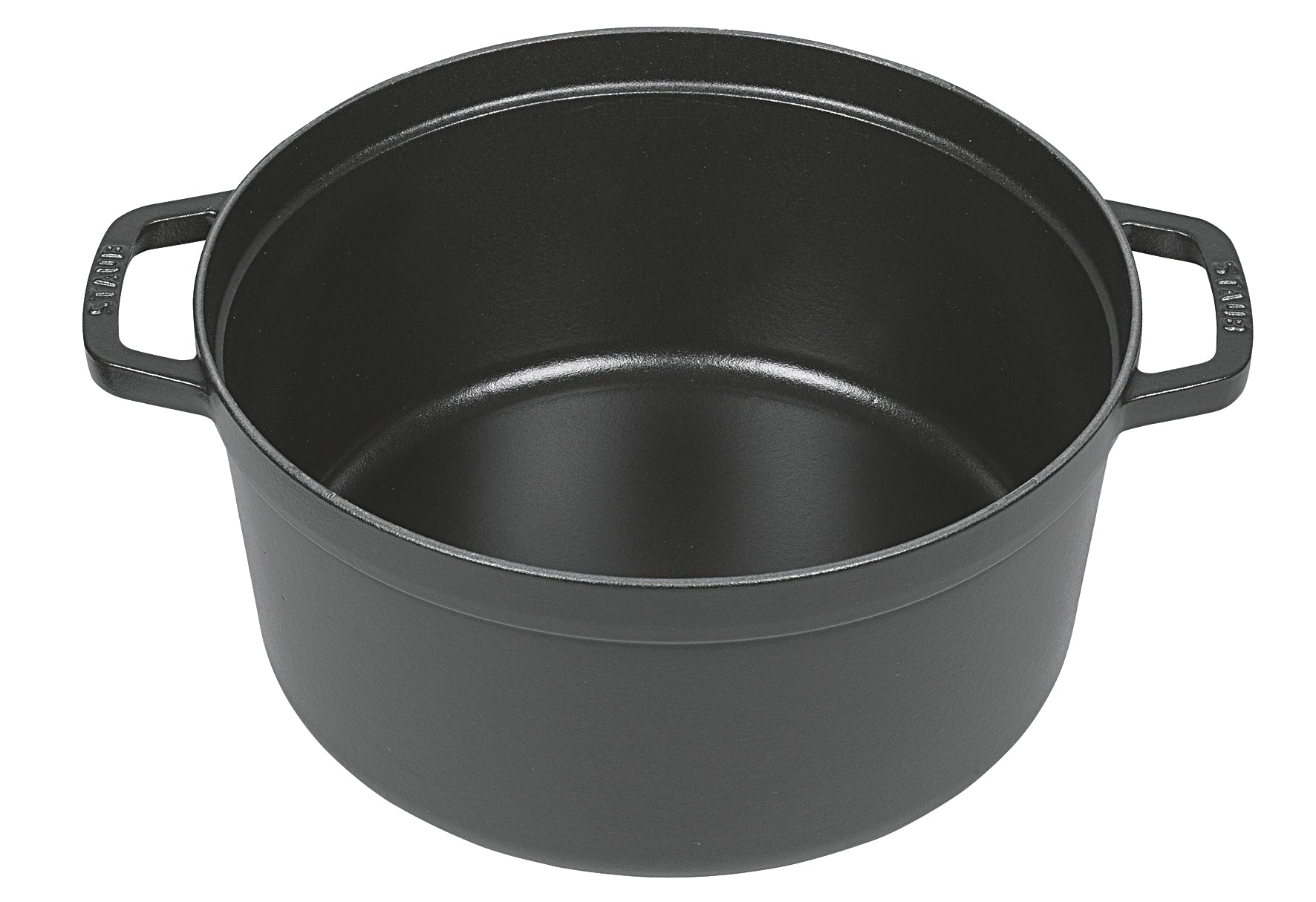 - Gusseisen, speichert Wärme und gibt sie langsam und gleichmäßig wieder ab, sehr gut geeignet für schonendes und gesundes Garen, innen matt-schwarz emailliert, spülmaschinengeeignet, für alle Herdarten inkl. Induktion geeignet