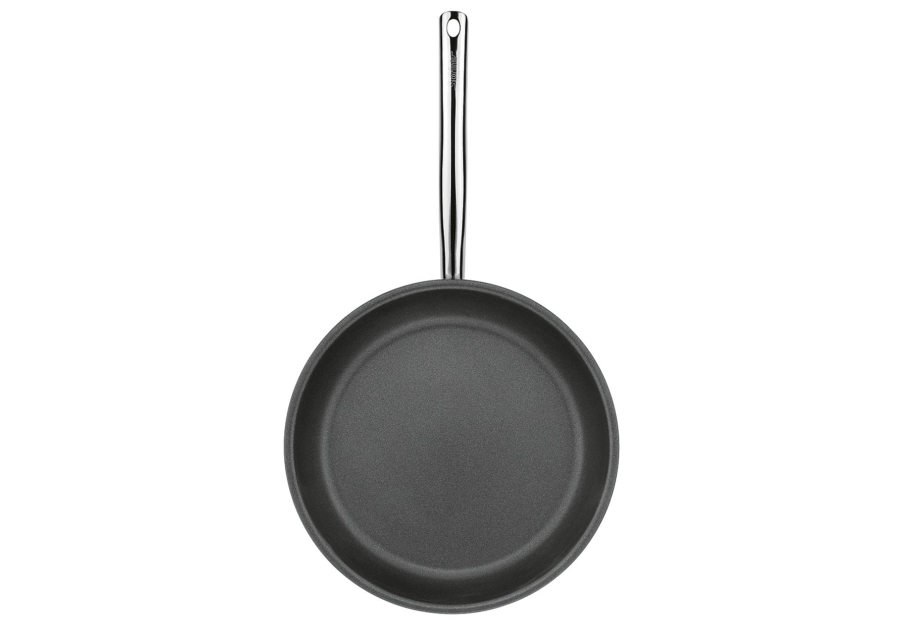 5-Lagen Mehrschichtmaterial mit Außenschicht aus induktionstauglichem Edelstahl 18/0, innen Edelstahlschicht 18/10 und dreifachem Aluminiumkern, mit 3-fach Antihaftversiegelung Vulcano Classic, optimale Wärmeverteilung, backofenfest, geschlossener Topf- und Schüttrand, geeignet für sämtliche Herdarten inklusive Induktion Ø 28 cm, H 4,4 cm