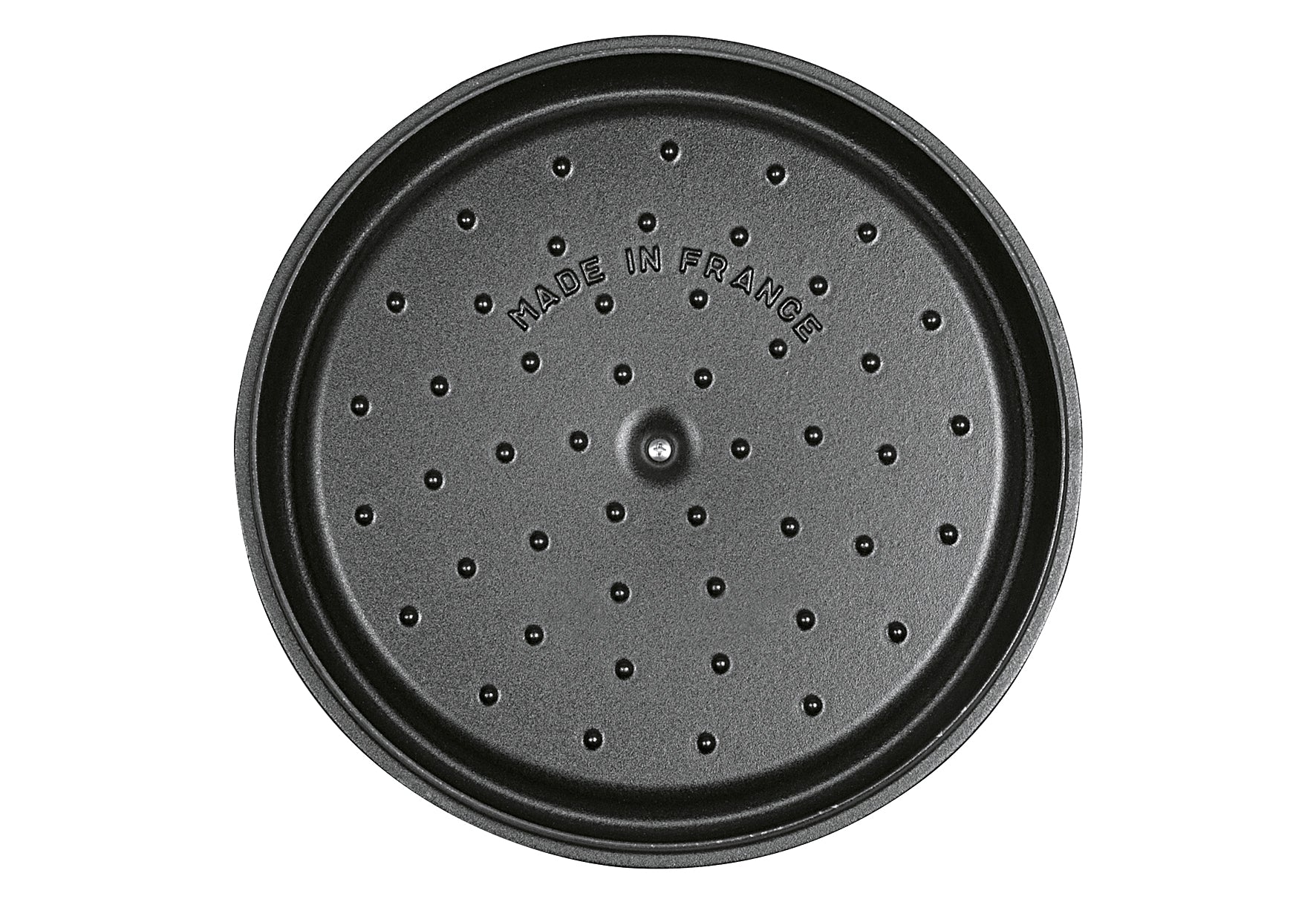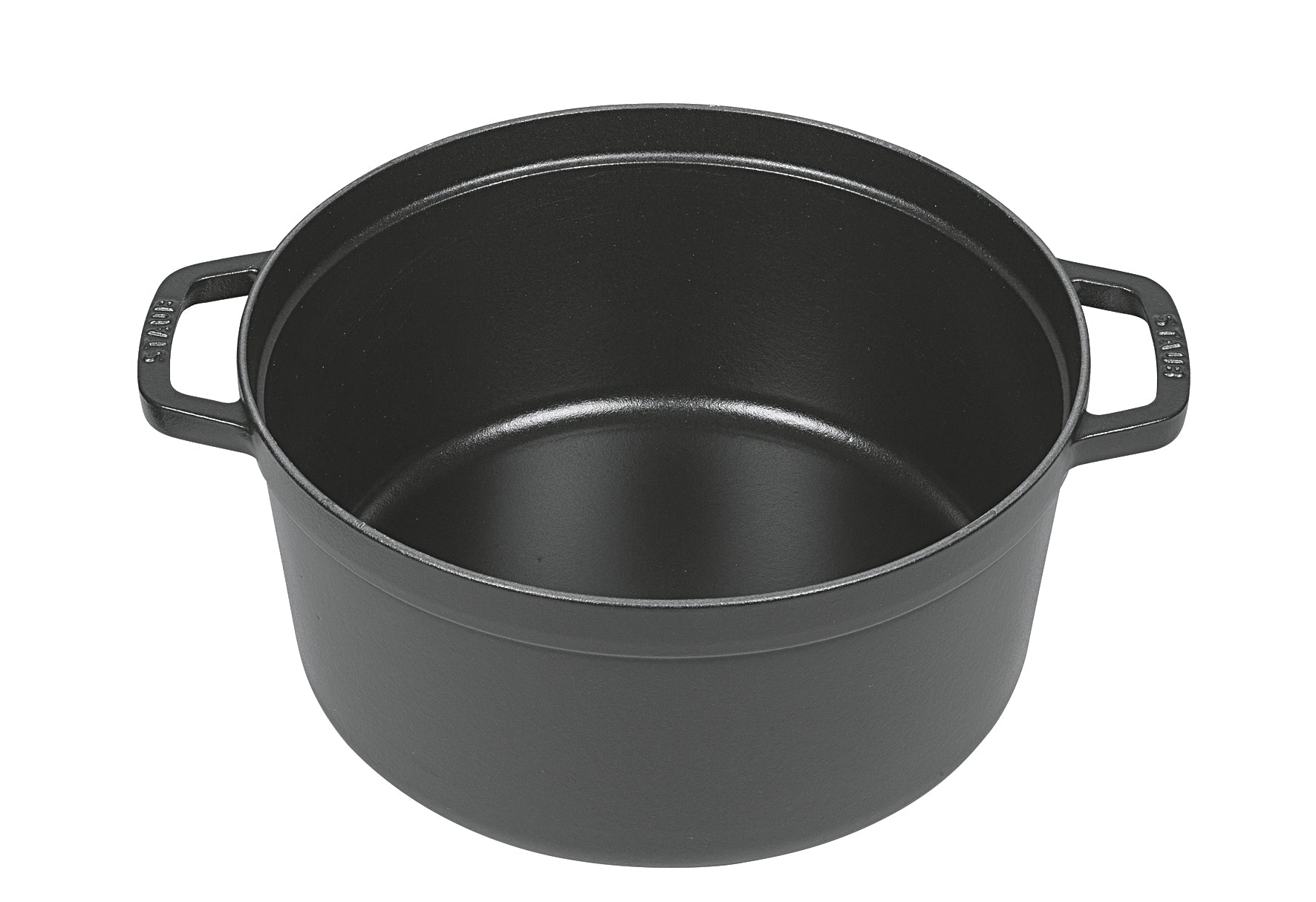- Gusseisen, speichert Wärme und gibt sie langsam und gleichmäßig wieder ab, sehr gut geeignet für schonendes und gesundes Garen, innen matt-schwarz emailliert, spülmaschinengeeignet, für alle Herdarten inkl. Induktion geeignet