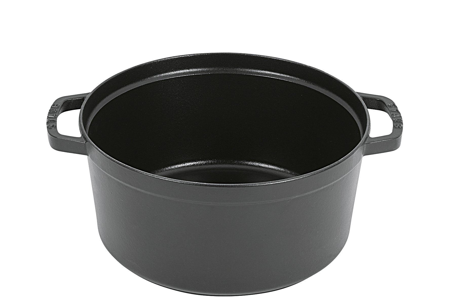 - Gusseisen, speichert Wärme und gibt sie langsam und gleichmäßig wieder ab, sehr gut geeignet für schonendes und gesundes Garen, innen matt-schwarz emailliert, spülmaschinengeeignet, für alle Herdarten inkl. Induktion geeignet
