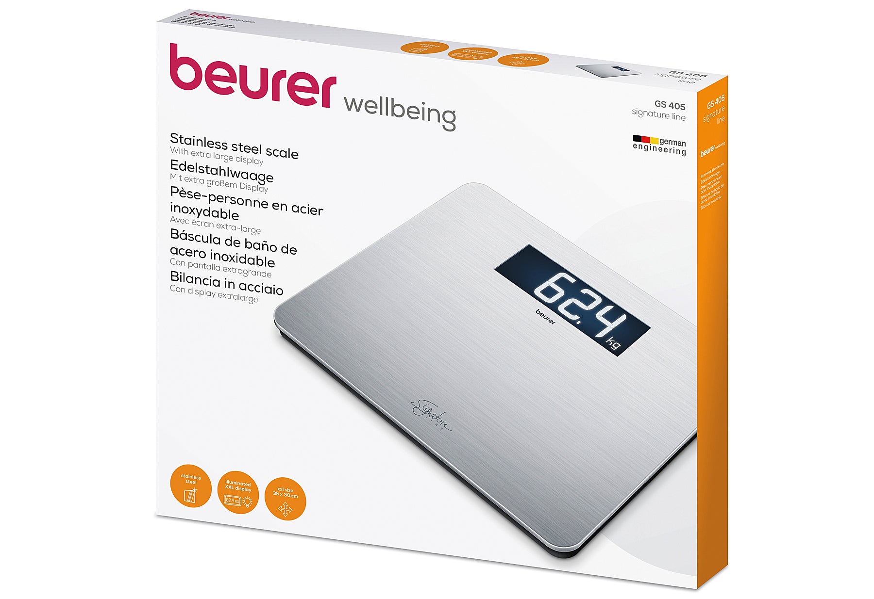 Edel und modern - die HS 405 Glaswaage in XXL-Format ist in jedem Badezimmer ein echter Hingucker. Die Waage ist mit einer hochwertigen Edelstahloberfläche ausgestattet, die durch Anti-Fingerprint-Beschichtung eine einfache Pflege ermöglicht. Das beleuchtete und modern schwarze Display im XXL-Format schafft zudem die beste Lesbarkeit der Messergebnisse. Die Trittfläche der Personenwaage ist besonders groß und verfügt über eine Tragkraft von bis zu 200 kg. Modernes Schwarz-Display in XXL-Größe, Beleuchtetes Display für beste Lesbarkeit, Große Trittfläche aus 8 mm Sicherheitsglas, Anti-fingerprint: Oberfläche beschichtet für leichte Reinigung, Extra hohe Tragkraft bis 200kg, Einschalttechnik: Quick Start, Geschlossene Unterseite, Abschaltautomatik, Überlastungsanzeige, Größe: 35 x 30 x 2,8 cm, Zifferngröße: 49 mm