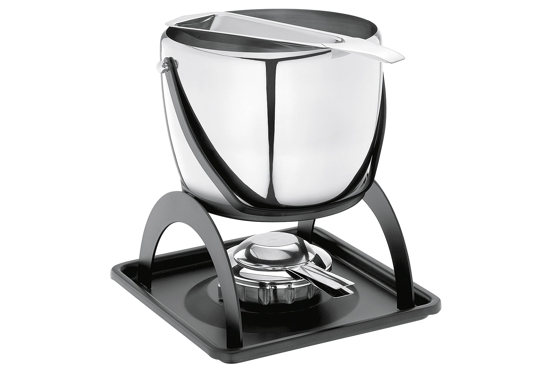 Bowlentopf aus Edelstahl, Inhalt: 4,5 Liter, induktionstauglich, Rechaud aus Metall schwarz lackiert, Inklusive Pastenbrenner und Zuckeraufleger, Mit Bedienungsanleitung und Rezepten