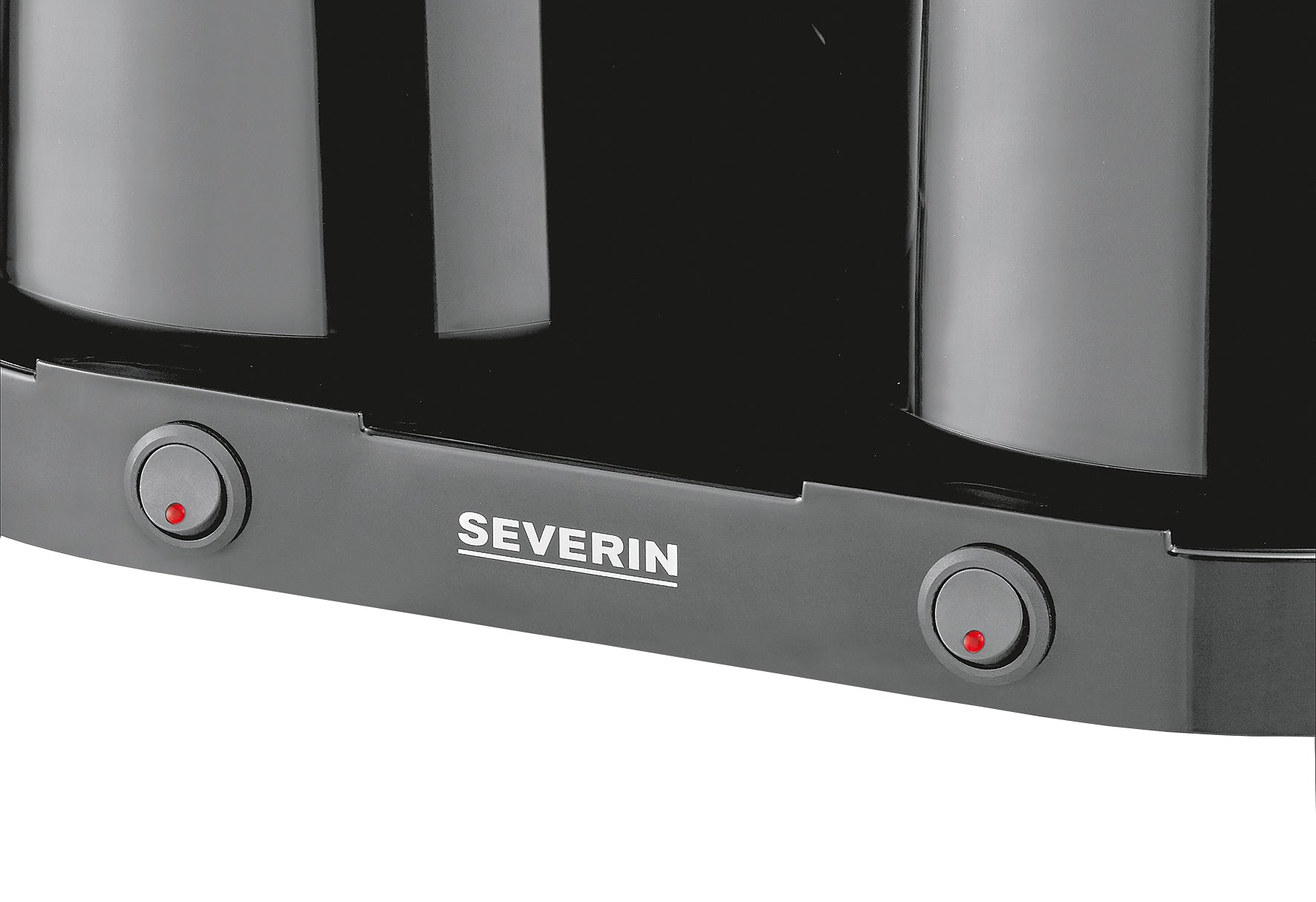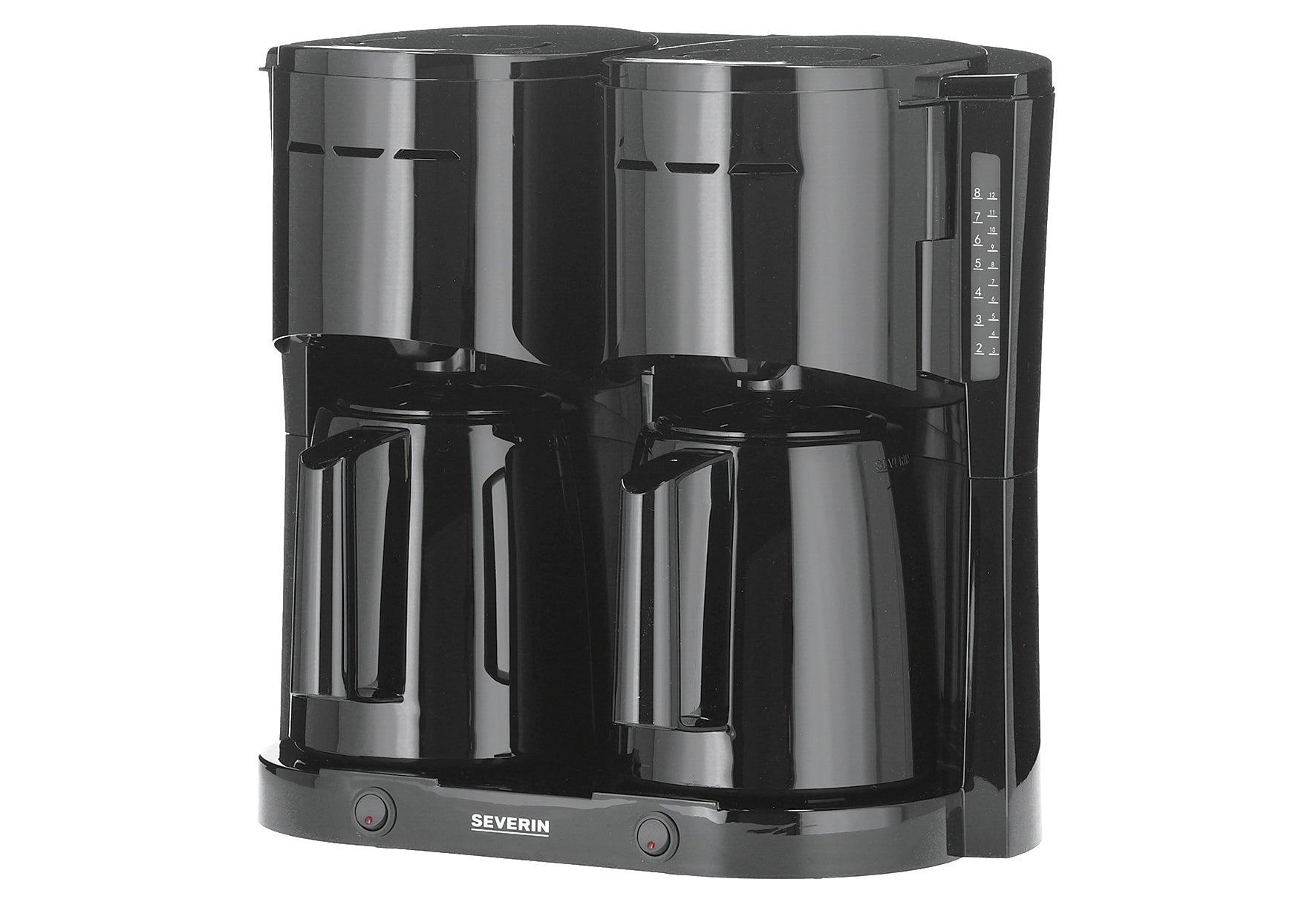 2x ca. 1.000 W, 2 Thermokannen mit Durchbrühdeckel, jeweils bis 8 Tassen, 2 x Schwenkfilter 1 x 4, automatische Abschaltung, beidseitige Wasserstandsanzeige