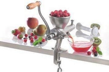 Grauguss, traditionelle Obst- und Gemüsepresse zur Herstellung von Säften, Marmeladen und Gelees sowie Fruchtmark für die gesunde Ernährung, ideal für die Verarbeitung von rohen und gekochten Obst- und Gemüsesorten, mit Stampfer aus Kunststoff - zum Schutz Ihrer Finger (LxBxH): 26x14x32 cm