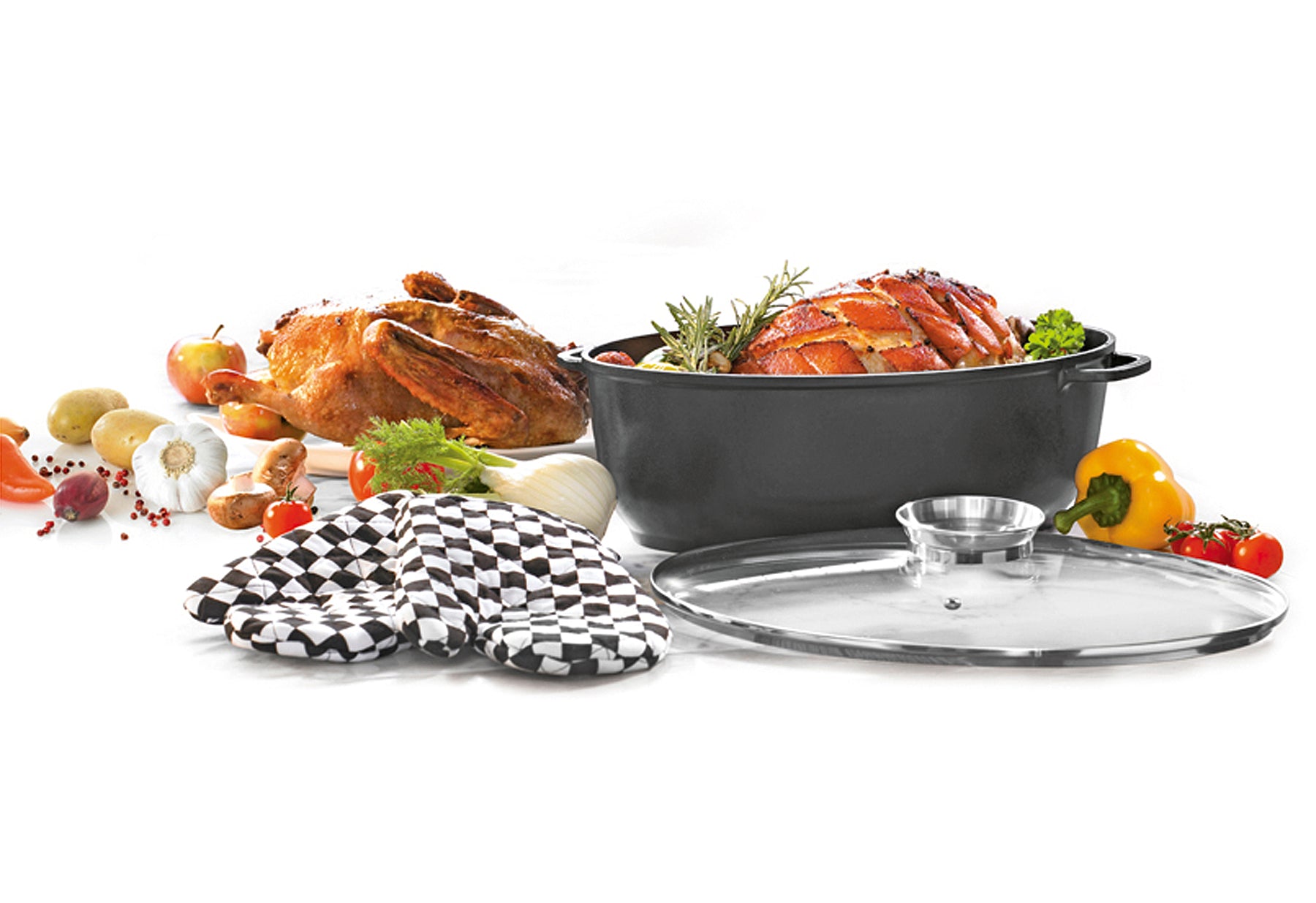 Gänsebräter Delta 8 l 38x27x13,5cm Aluguss inklusive 1 Paar Handschuhe