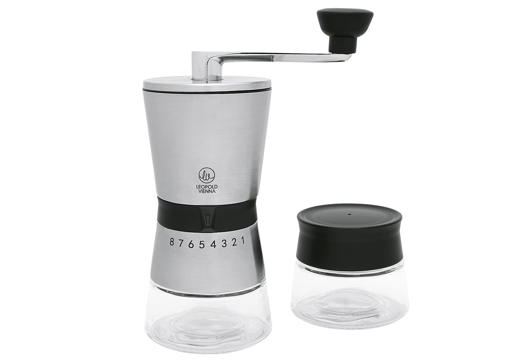 Edelstahl, Glas, 8 Mahlgradeinstellungen, inklusive verschließbarem Vorratsbehälter aus Glas (LxBxH): 23x21x12 cm
