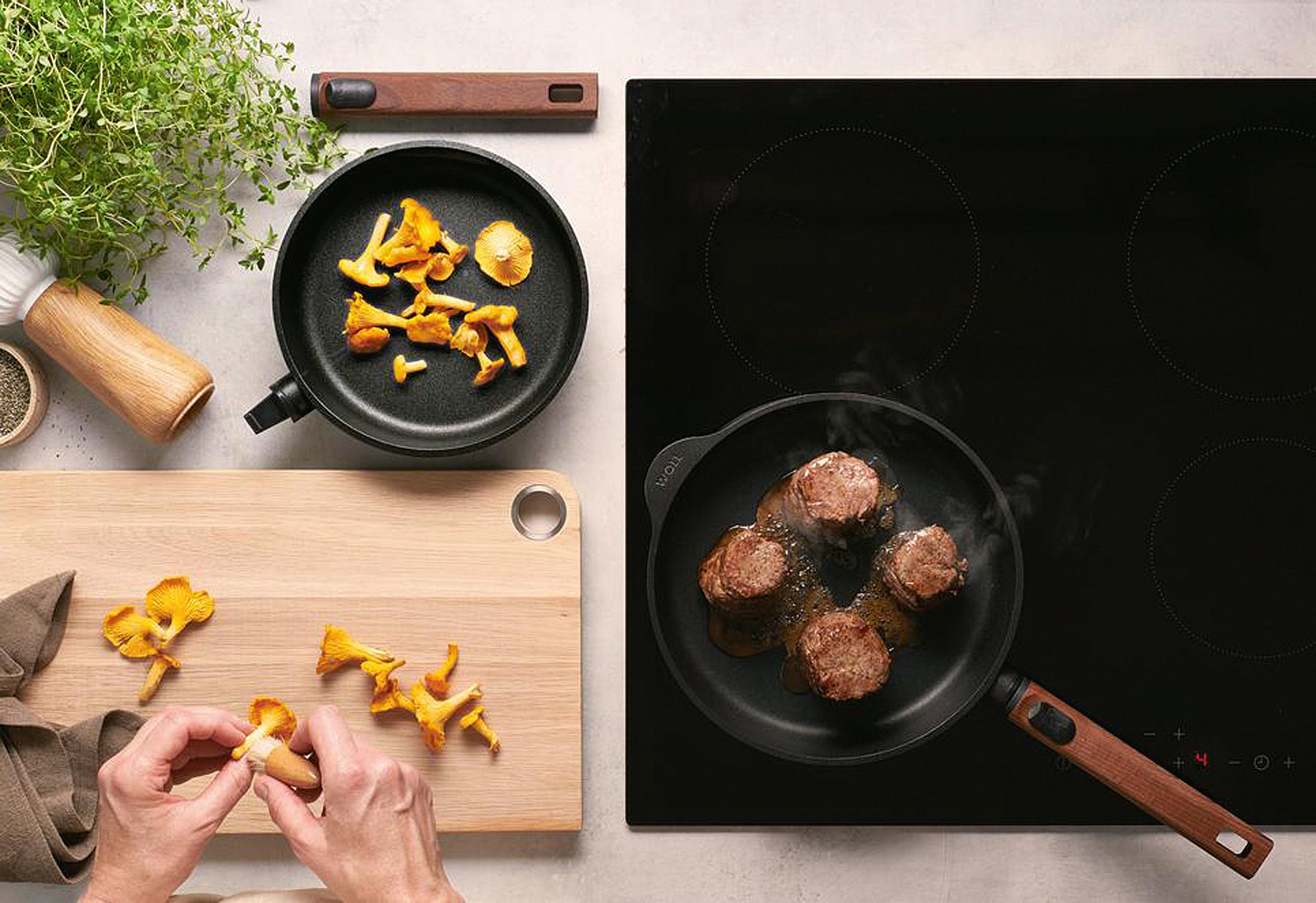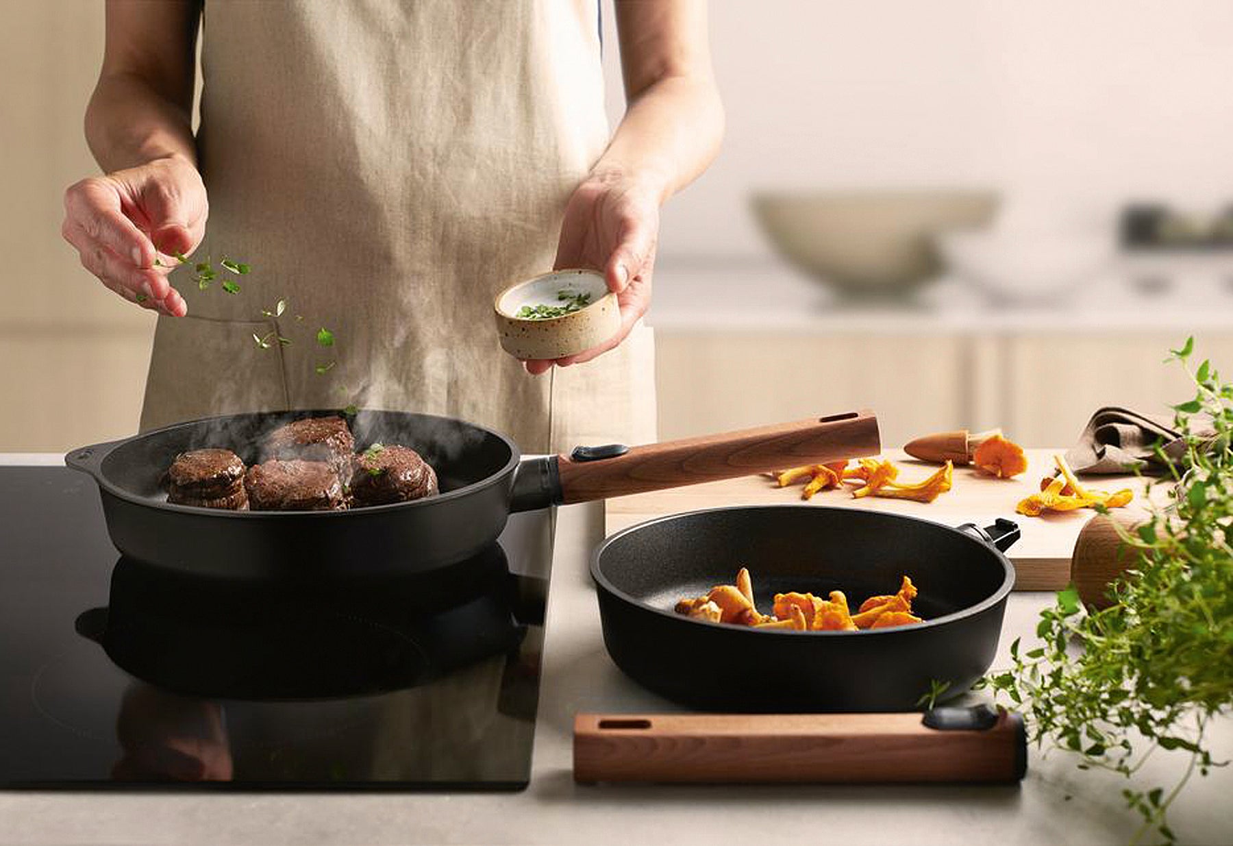 - Aluminum, mit abnehmbarem Holzstiel, aus Materialien natürlichen Ursprungs, PFAS-freie Diamond-QXR - Beschichtung mit bemerkenswertem Antihaft-Effekt, sehr robust, schnitt- und abriebfeste Oberfläche, durch die ultraraue Oberfläche entstehen Röstaromen, die Gerichte noch leckerer machen, mit Induktionsboden, für alle Herdarten geeignet, backofenfest bis zu 300 °C, ohne Stiel, spülmaschinenfest ohne Stiel