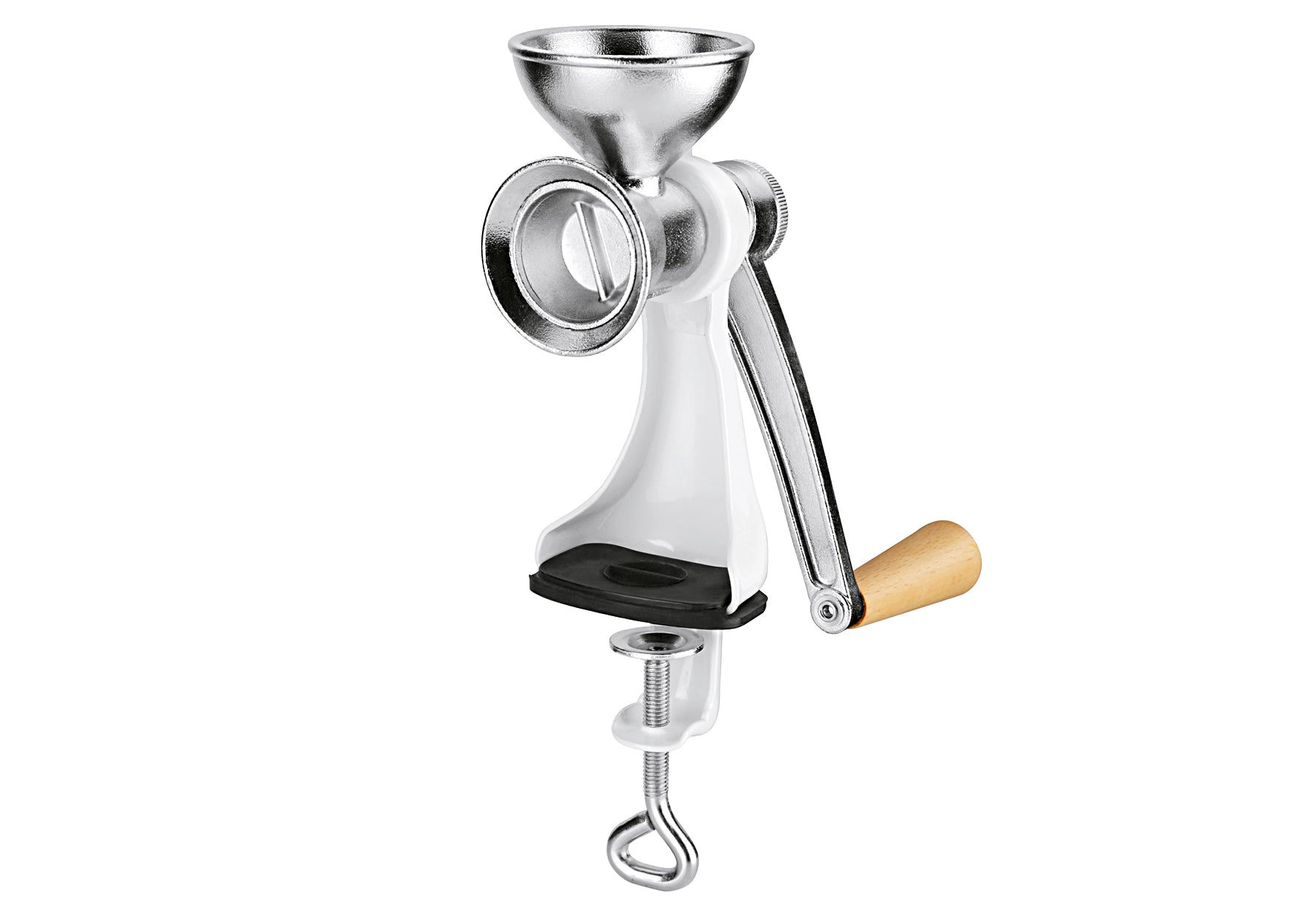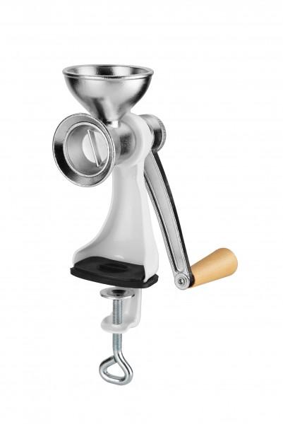 - Gehäuse und Trichter aus Edelstahl-Guß / Kurbel aus Edelstahl mit Holzgriff, für Mohn, Leinsamen und andere ölhaltige Saaten, Unterstellhöhe für Gefäße bis ca. 8 cm, stabile Tischklemme