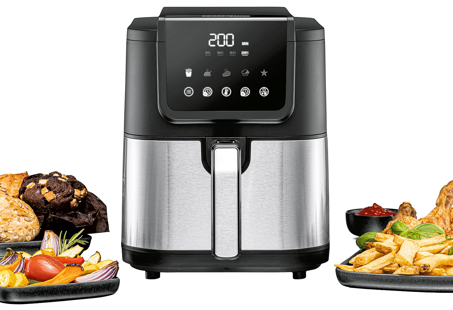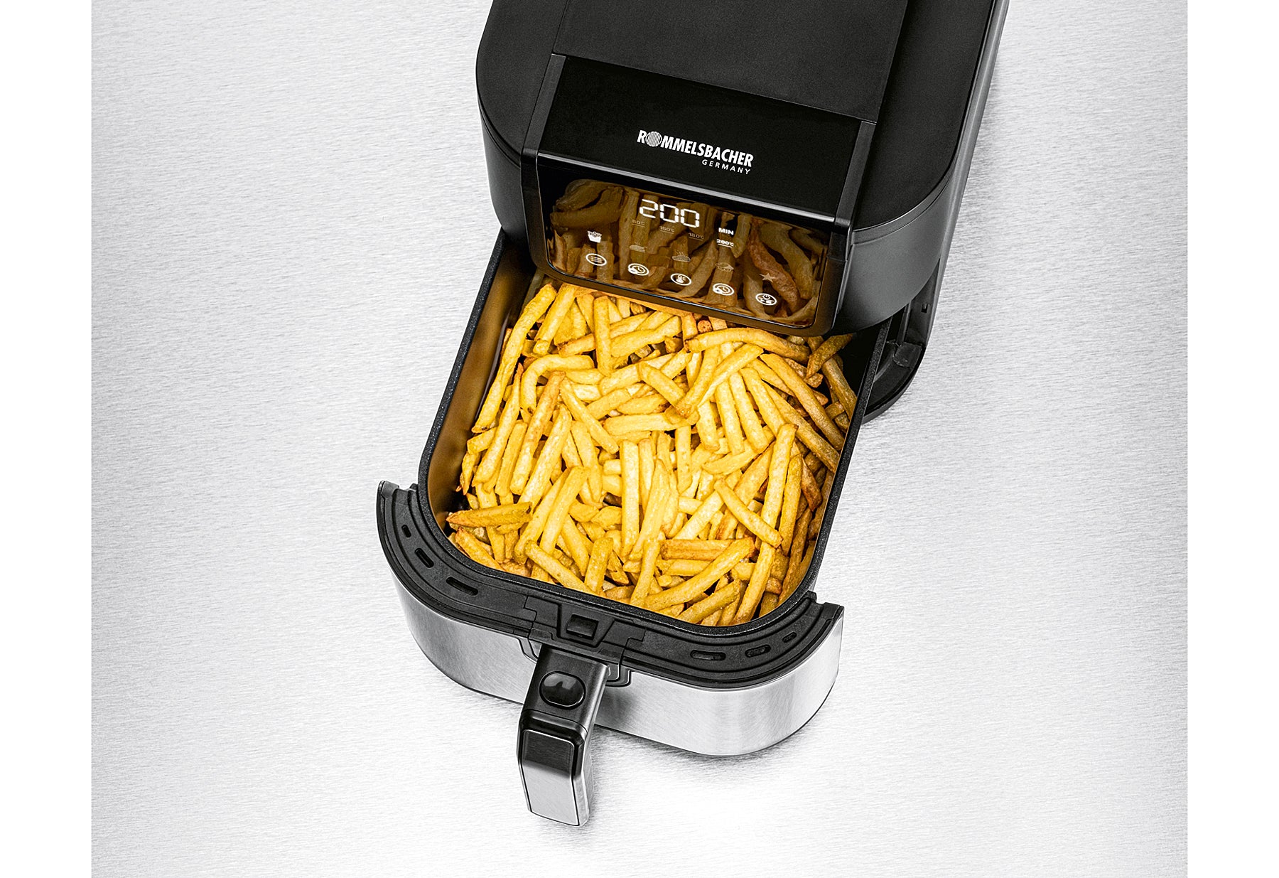 - kompakte rechteckige Bauform für optimale Befüllung, edler Materialmix mit Edelstahl, fettarm Frittieren, Braten, Grillen, Backen, innovative Hot Air Convection Technology: gleichmäßige Wärmeverteilung, leiser Betrieb, einfache Bedienung über Touch Control Sensoren, übersichtliches LED-Display, 5 Programme, 60 Minuten Zeitschaltuhr, 4 Temperaturstufen (80/160/180/200 °C), Programme und Temperaturstufen individuell einstell- und speicherbar, herausnehmbarer Frittier-/Backkorb mit 5 l Volumen, für bis zu 800 g Pommes, mit herausnehmbarem Frittier-Rost, Wende-/Schüttel-Erinnerung für perfekte Ergebnisse, leichte Reinigung durch hochwertige 2-Lagen Antihaftbeschichtung, sicheres Handling durch wärmeisoliertes Gehäuse, Sicherheitsschalter, Überhitzungsschutz, rutschfeste Füße, Leistung 1500 Watt, Schukostecker CEE 7/7