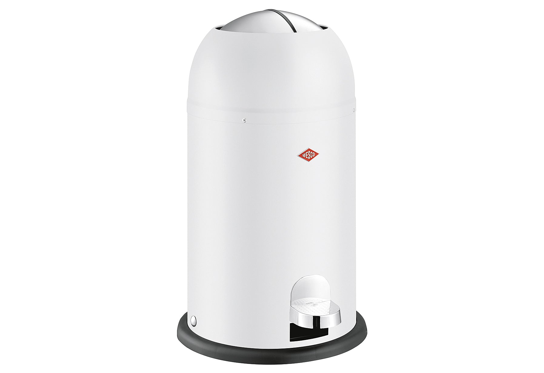 - Stahlblech, pulverbeschichtet / Kunststoff (Einsatz, Bodenring) / Edelstahl (Einwurfklappen), perfekt für kleine Küchen oder Büro, mit Fußtritt bedienbar, schließt sanft und sicher, Bodenring am Korpus schützt empfindliche Böden