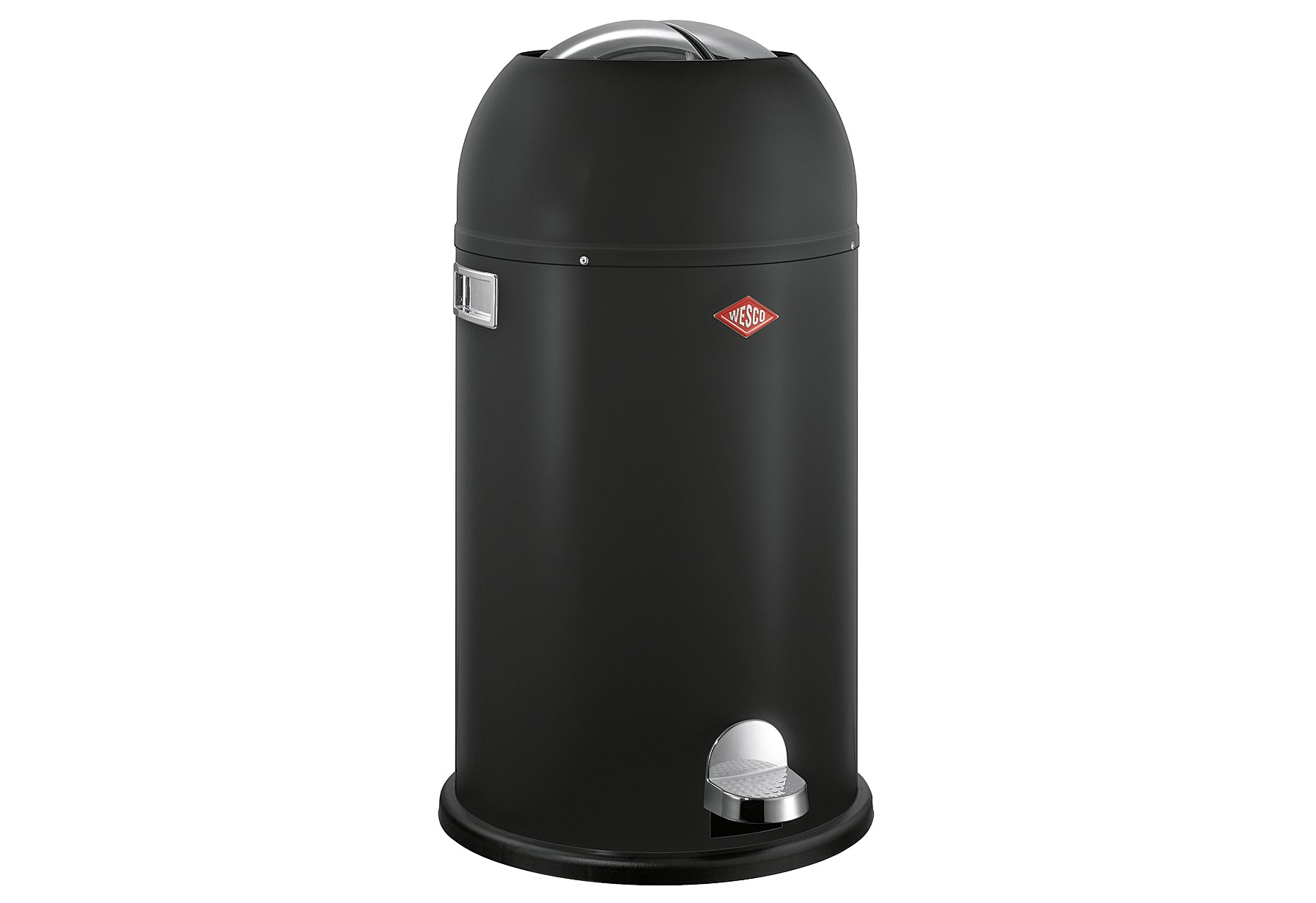 - Stahlblech, pulverbeschichtet / Kunststoff (Einsatz, Bodenring) / Edelstahl (Einwurfklappen), lässt sich durch einen einfachen Fußtritt leicht öffnen und schließt dank des eingebauten Dämpfers geräuschlos, der Bodenring schont den Bodenbelag