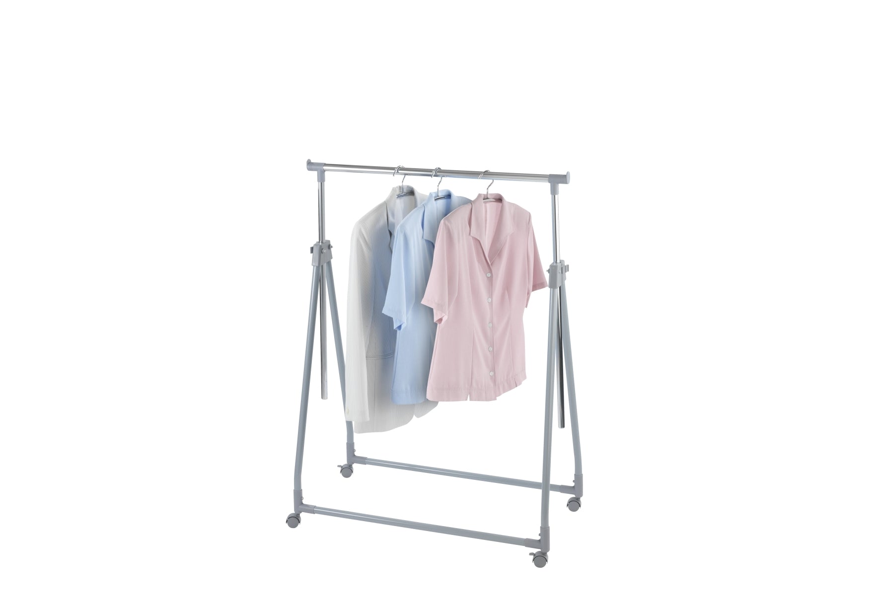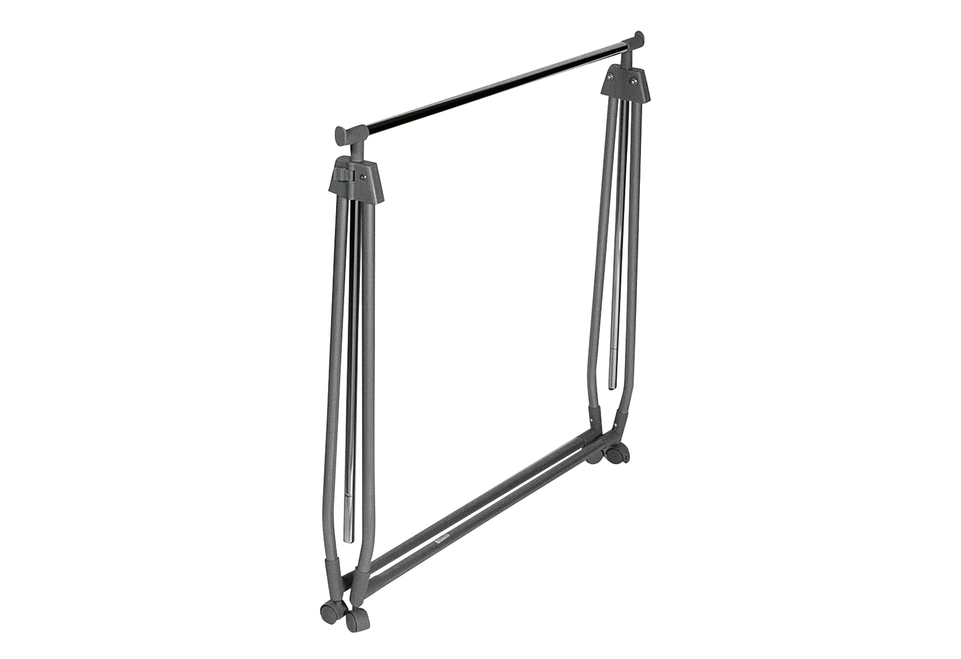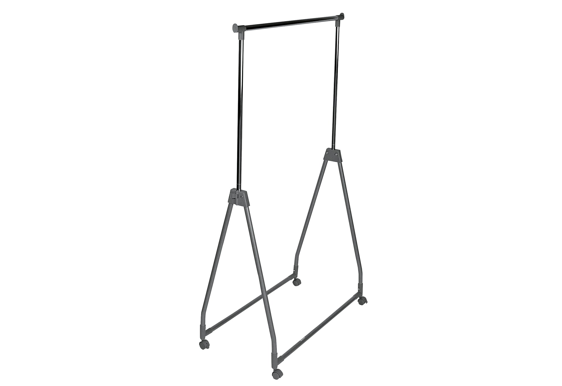 - Chrom / Kunststoff, platzsparend zu verstauen, auf 11 cm zusammenklappbar, zum Aufbewahren, Lüften und Transportieren von Kleidung, mit 4 Rollen zum leichten Fortbewegen, Traglast 40 kg, stufenlos höhenverstellbar