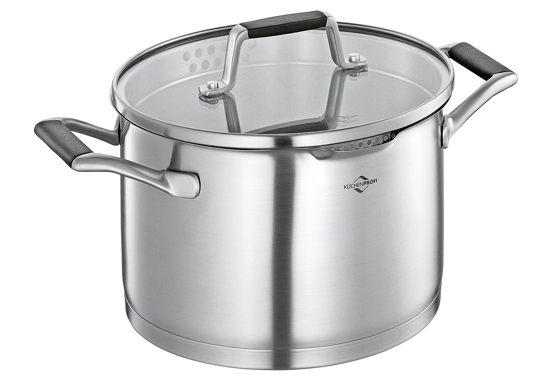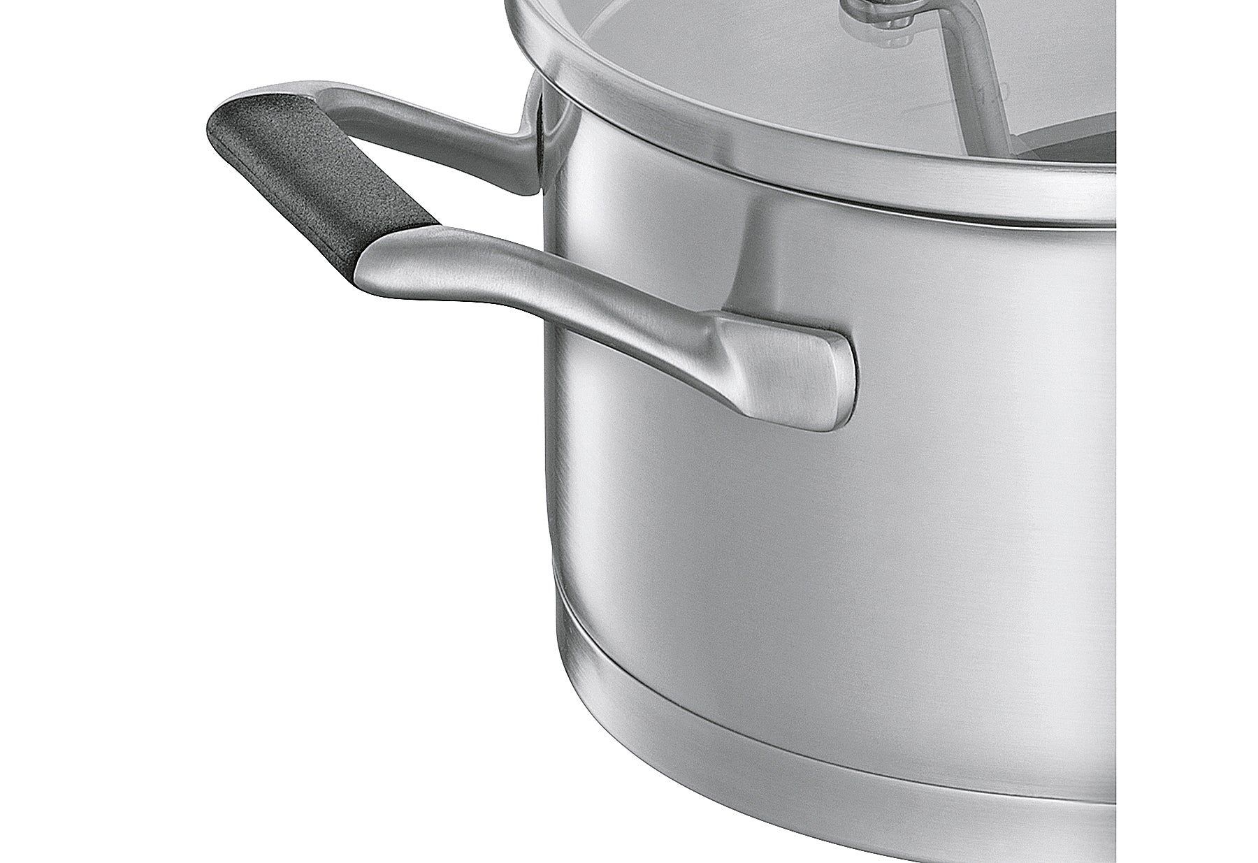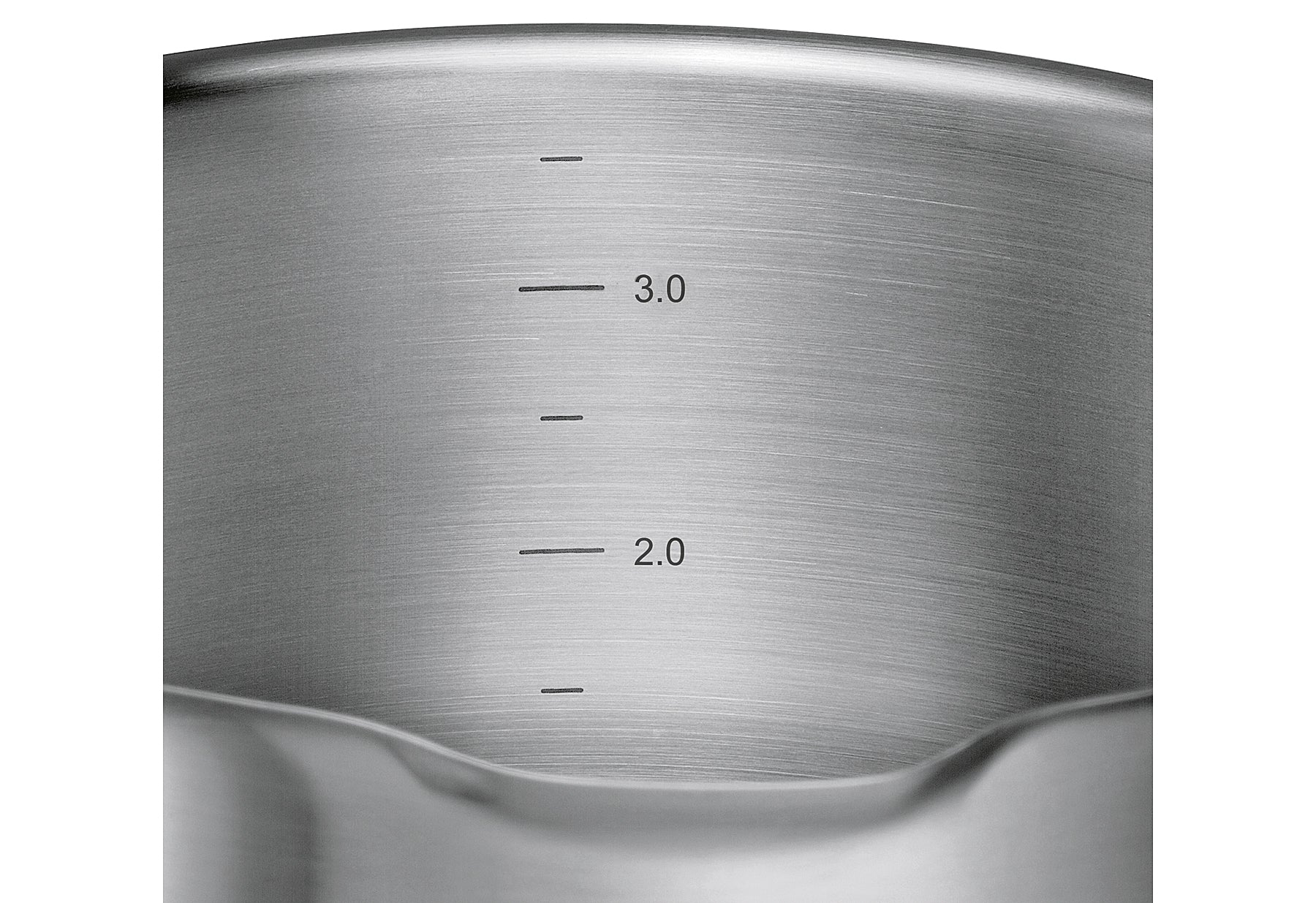 Edelstahl rostfrei / Glas, Topf mit praktischem Ausgießer, extra starker Mehrschichtboden, Deckel aus Sicherheitsglas, inkl. feinem und, grobem Sieb, wärmeisolierende, silikonummantelte Griffe, mit praktischer Innenskala, für alle Herdarten inkl. Induktion geeignet 4 l, H 13 cm, Ø 20 cm