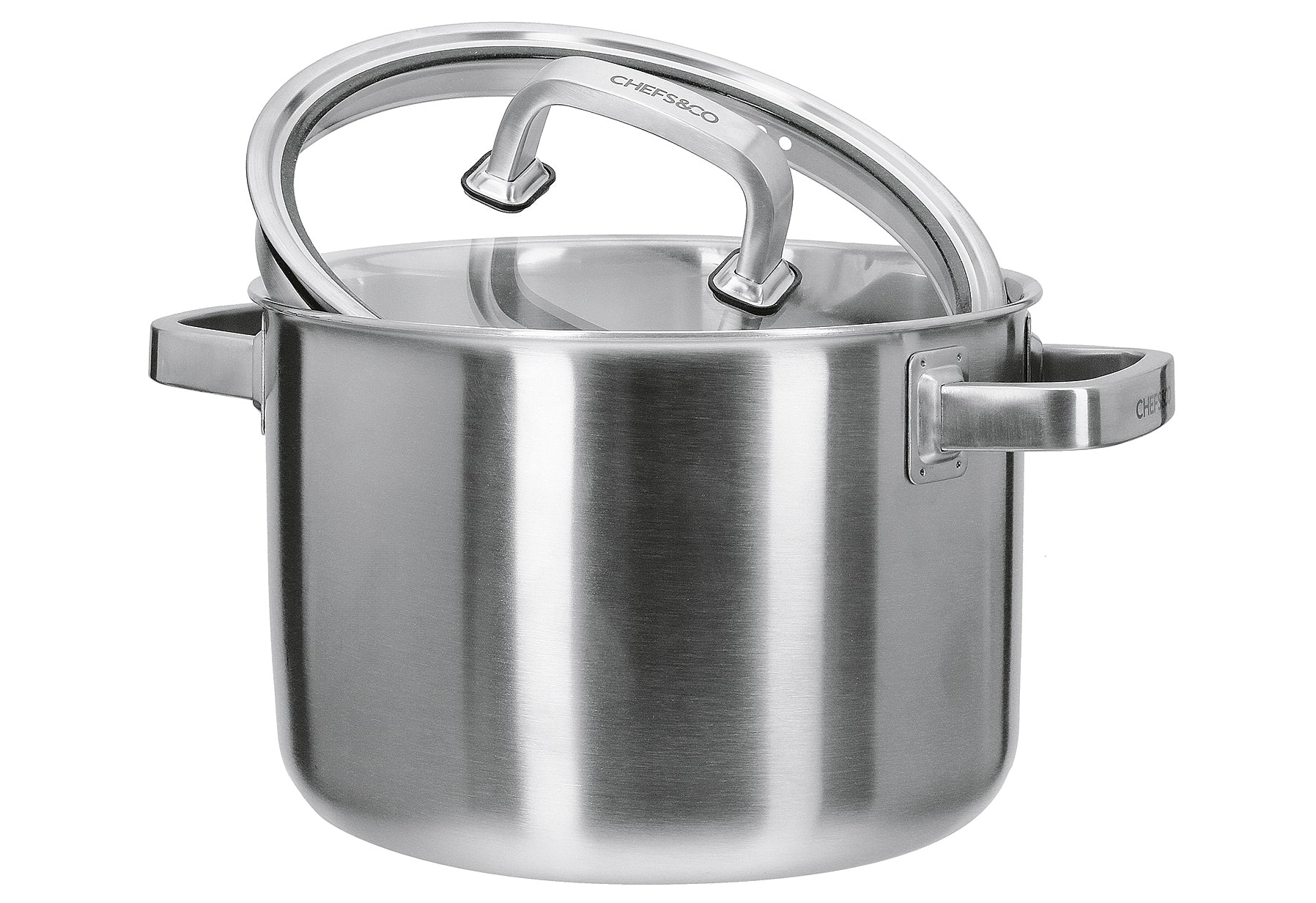 Edelstahl 18/10, dreilagiger Materialaufbau (3-ply), optimale Wärmespeicherung und -verteilung, ergonomische Kaltgriffe, ausgeprägter Schüttrand, Mess-Skala, optimal für Kochfelder mit Muldenlüfter geeignet, für alle Herdarten inkl. Induktion geeignet, spülmaschinenfest, mit Glasdeckel 7,4 l, Ø 24 cm