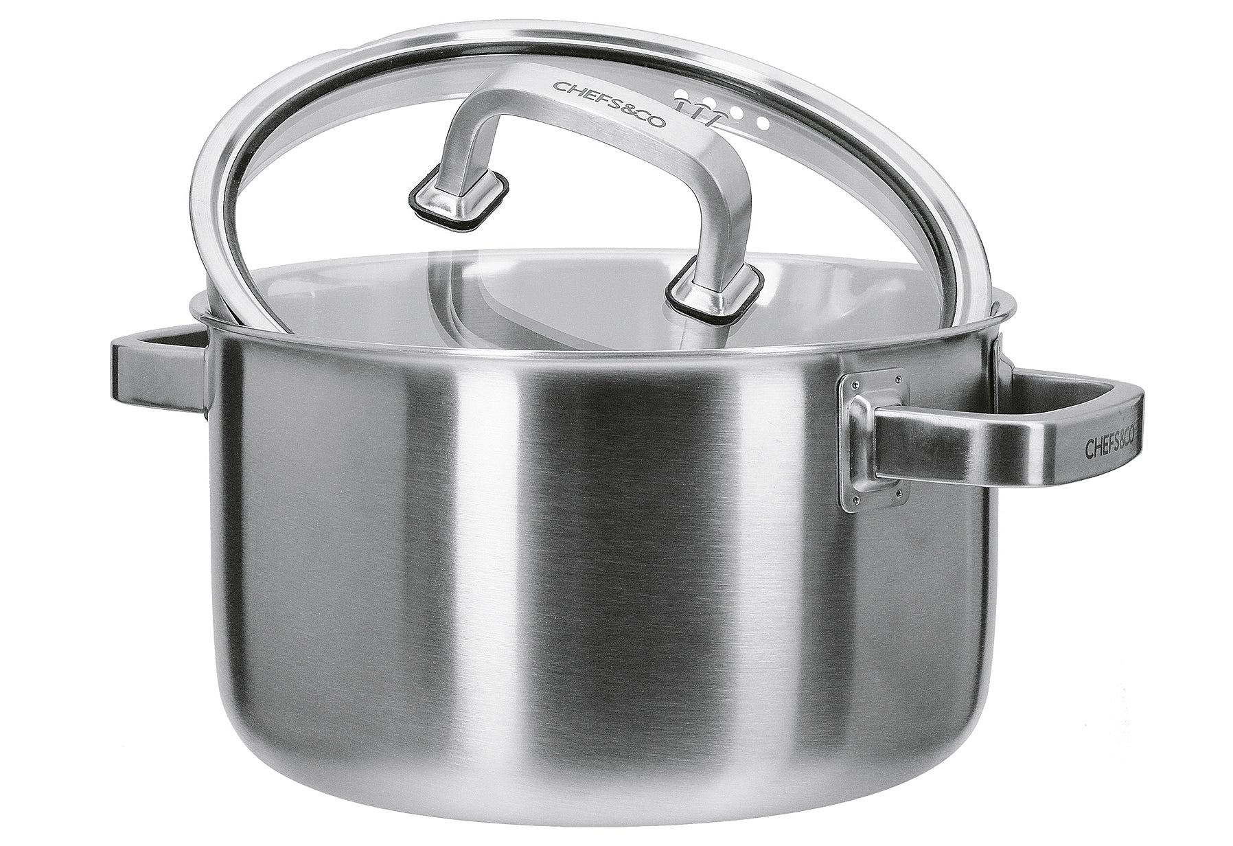 Edelstahl 18/10, dreilagiger Materialaufbau (3-ply), optimale Wärmespeicherung und -verteilung, ergonomische Kaltgriffe, ausgeprägter Schüttrand, Mess-Skala, optimal für Kochfelder mit Muldenlüfter geeignet, für alle Herdarten inkl. Induktion geeignet, spülmaschinenfest, mit Glasdeckel 6 l, Ø 24 cm