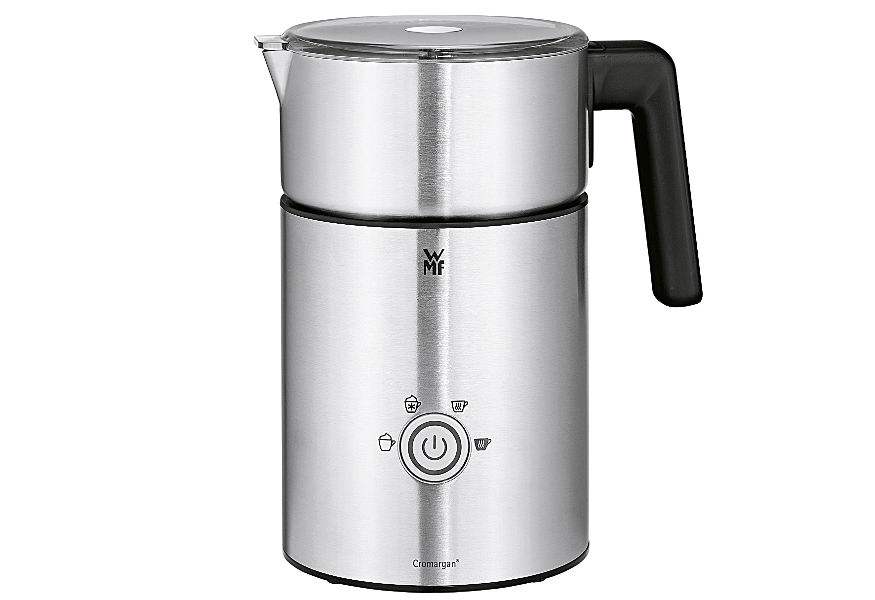 - Kapazität für heiße Milch von 150 bis zu 500 ml, edles Design aus hochwertigem Cromargan matt, Induktionsmilchaufschäumer mit 4 Funktionen: heißer Milchschaum, kalter Milchschaum, heiße Milch, selbst gemachte heiße Schokolade aus Schokoladenstücken, Milchschaumfunktion, für extra viel Milchschaum und heiße Schokolade von 150 bis zu 350 ml - ausreichend für 2 Latte Macchiato, spülmaschinengeeigneter Milchbehälter aus Cromargan, Abschaltautomatik nach Programmende, LED-beleuchtete Taste mit WMF One Touch Funktion, Schnaupe zum tropffreien und präzisen Ausgießen, 220 - 240 Volt, 50 / 60 Hz, 650 Watt, Schukostecker CEE 7/7