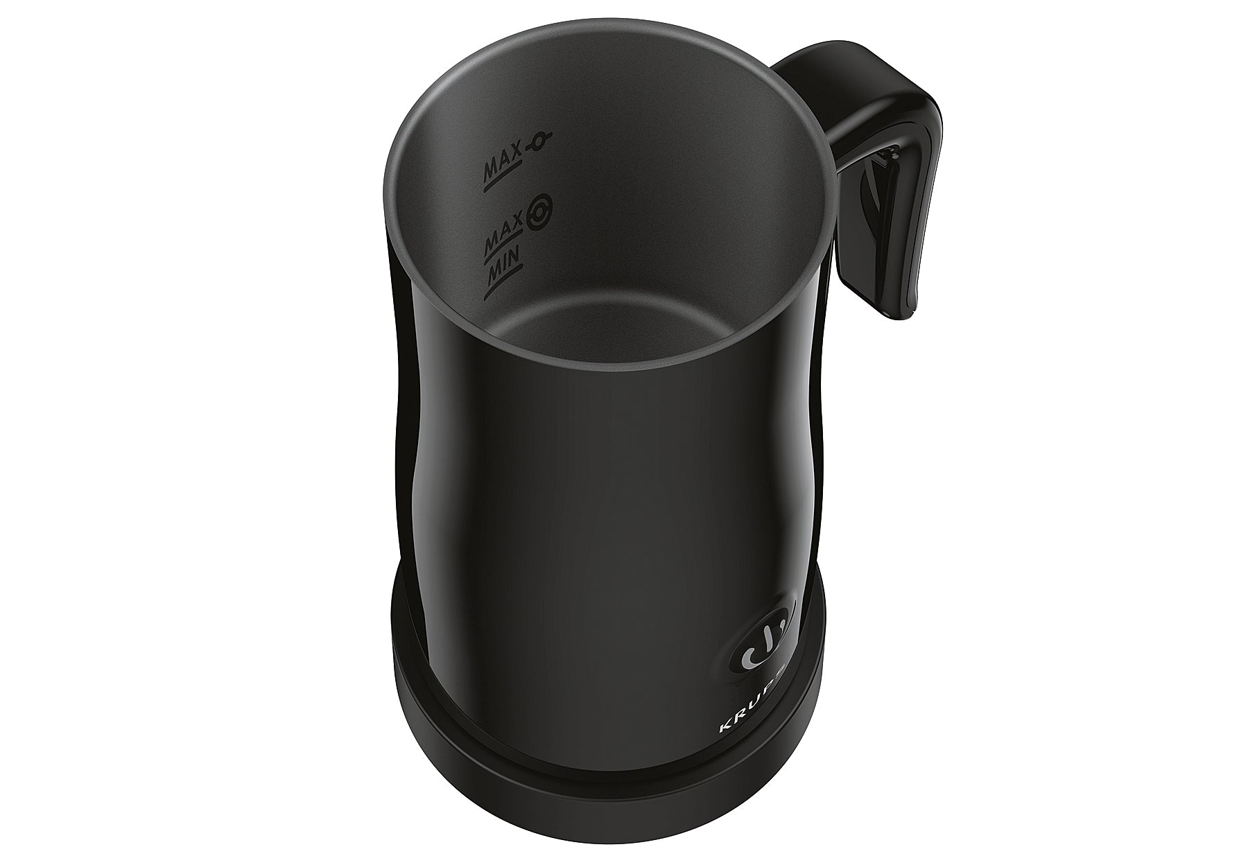 einfache Bedienung per Knopfdruck, 360° Sockel mit Zentralkontakt, Innenbehälter antihaftbeschichtet, Aufschäumkapazität 150 ml, abnehmbarer magnetischer Aufschäumaufsatz, automatische Abschaltung nach dem Aufschäumen