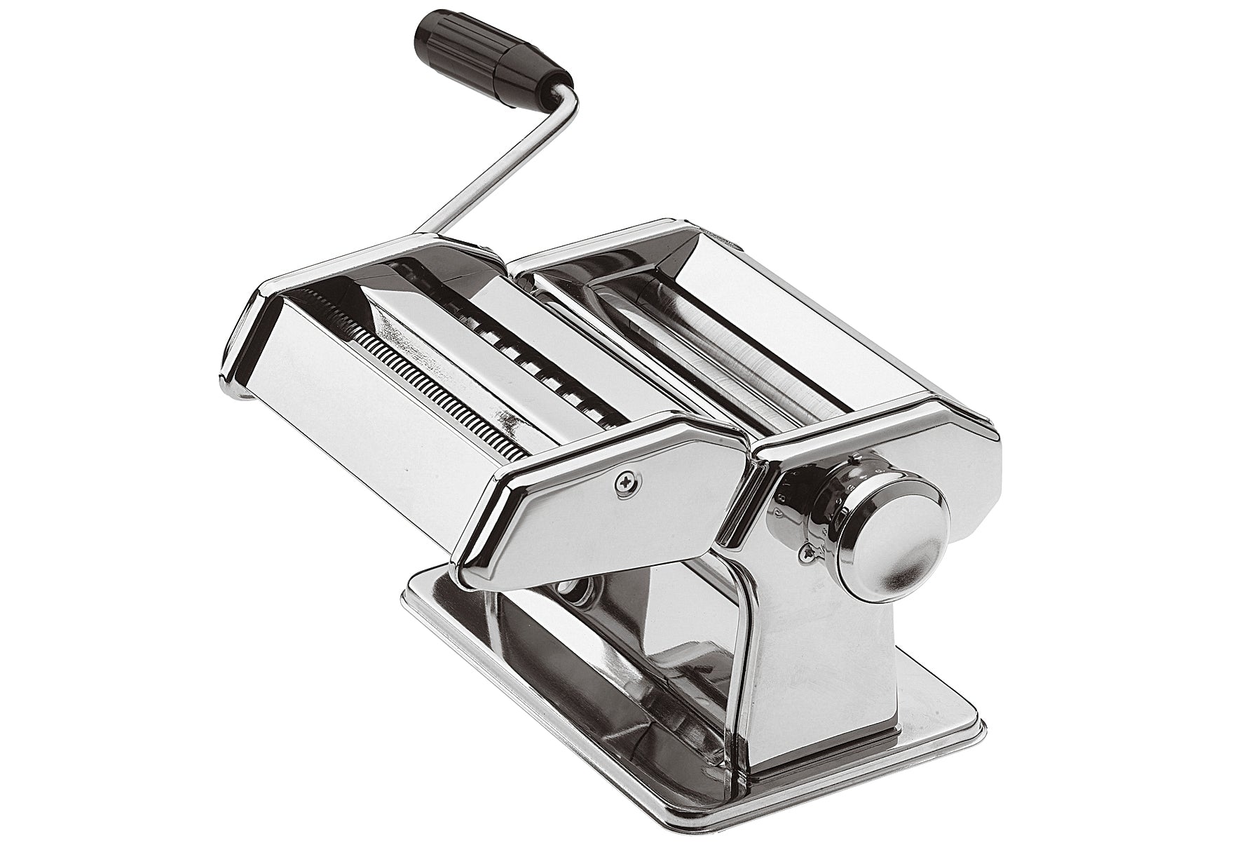 - Edelstahl rostfrei, mit Kurbelantrieb, auswechselbare Vorsätze für Tagliolini, Tagliatelle und Lasagne, Teigbreite 145 mm, verstellbare Teigdicke von 0,2 mm bis 3 mm, rutschfester Sockel, extra hohe Tischklemme (25 - 60 mm Arbeitsplatte)