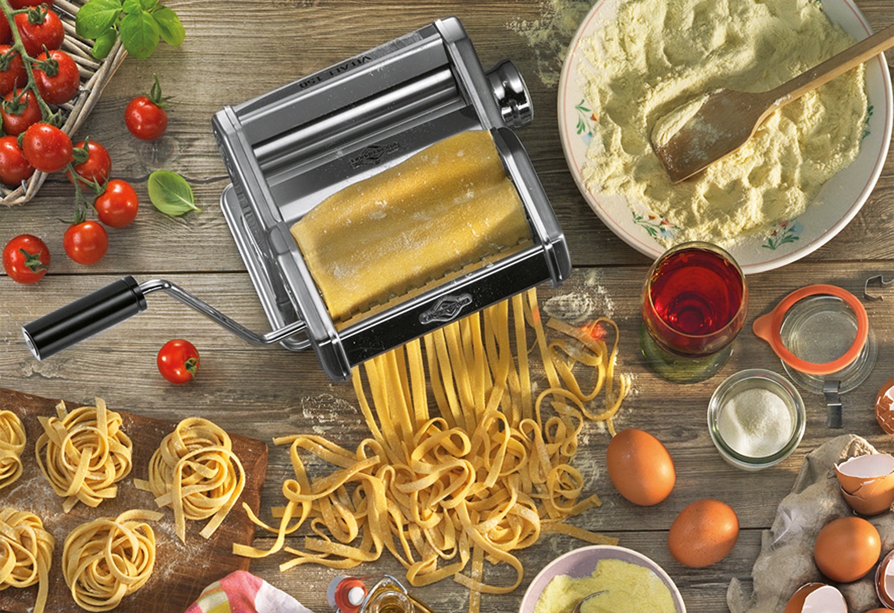 - Edelstahl rostfrei / Walzen aus Aluminium, Regler für 7 Teigstärken, Walzen für Nudelplatten und ein abnehmbarer Aufsatz für Tagliolini und Tagliatelle, extragroße Tischklemme für Arbeitsflächen bis zu bis 6,5 cm Dicke, inklusive Bedienungsanleitung