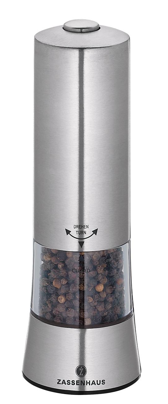 - Edelstahl / Acryl, Original Zassenhaus-Qualitätsmahlwerk aus Hochleistungskeramik, perfekte Mahlgradeinstellung von pulverfein bis grob gemörsert, mit LED Licht, inkl. Batterien, 25 Jahre Garantie auf das Mahlwerk
