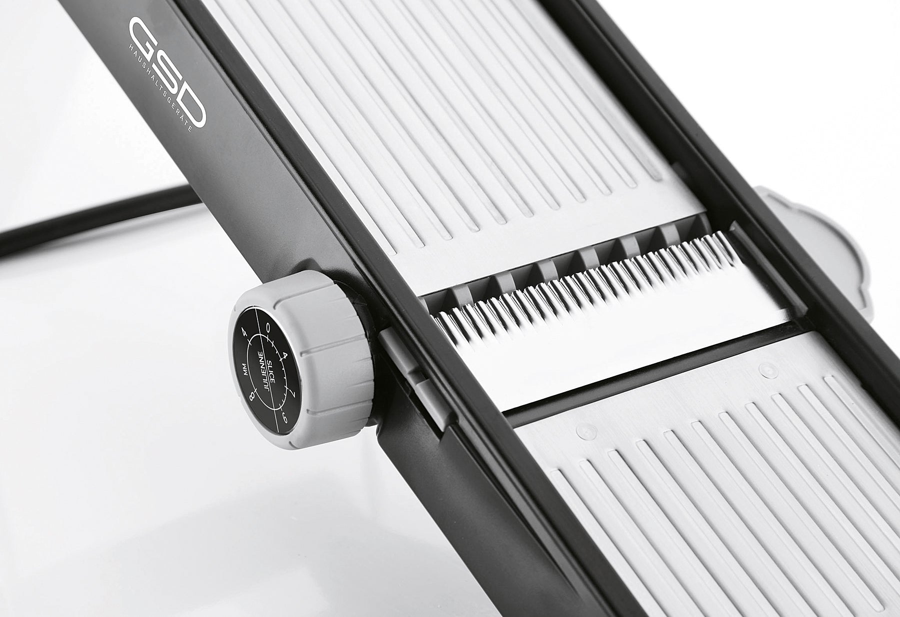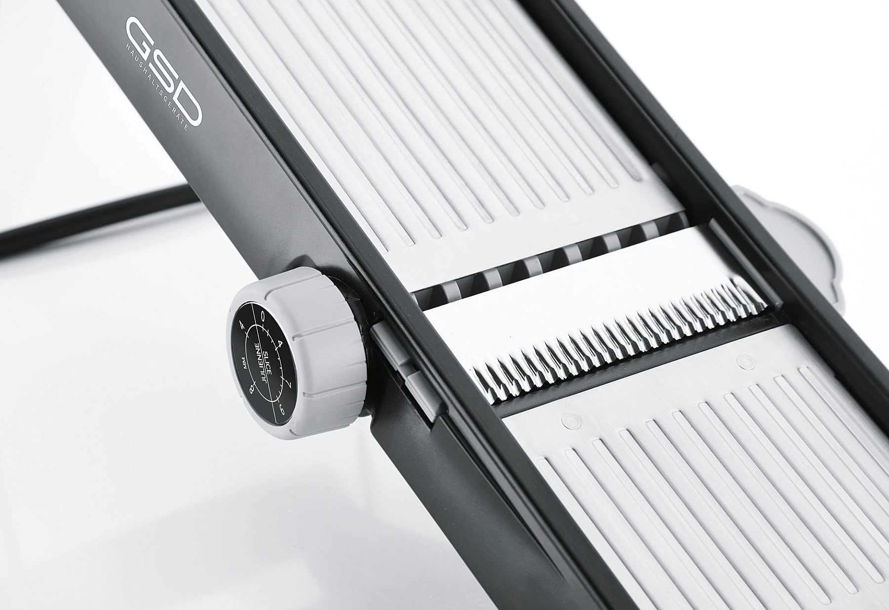 Profi Mandoline aus Edelstahl mit schwarzem Rahmen