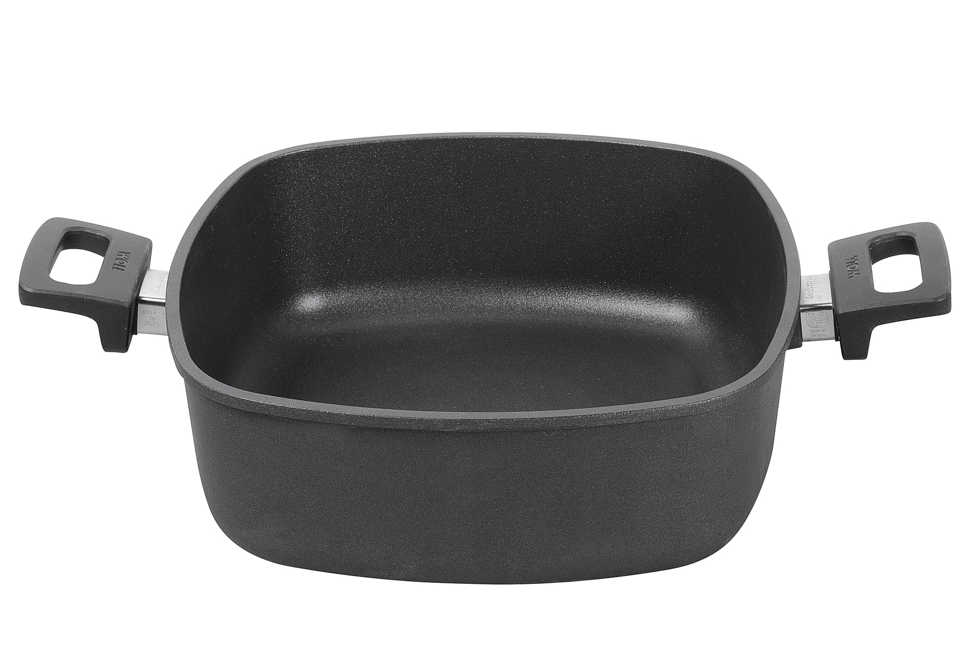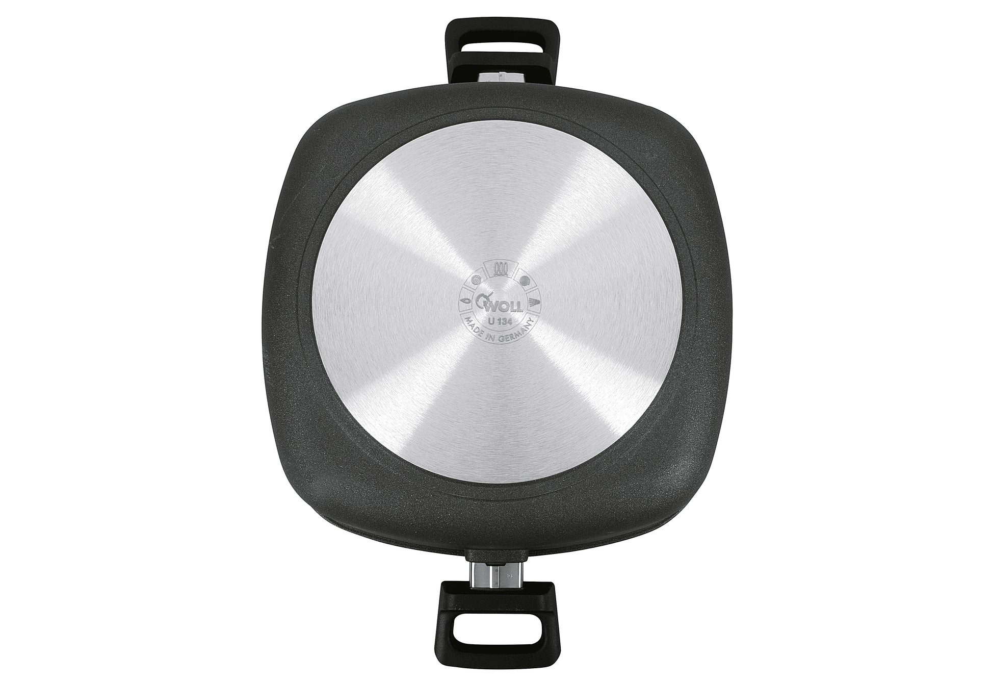- Aluguss, ohne Deckel, ca. 9 mm Bodenstärke für optimale Wärmespeicherung, vollflächig aufgebrachter Induktionsboden, schnitt- und abriebfeste TitanPlus-Hartgrundversiegelung, mit 2 Seitengriffen, backofenfest bis 250° C, hohe Stoßfestigkeit, verstärkter Schüttrand, spülmaschinengeeignet, für alle Herdarten inkl. Induktion geeignet