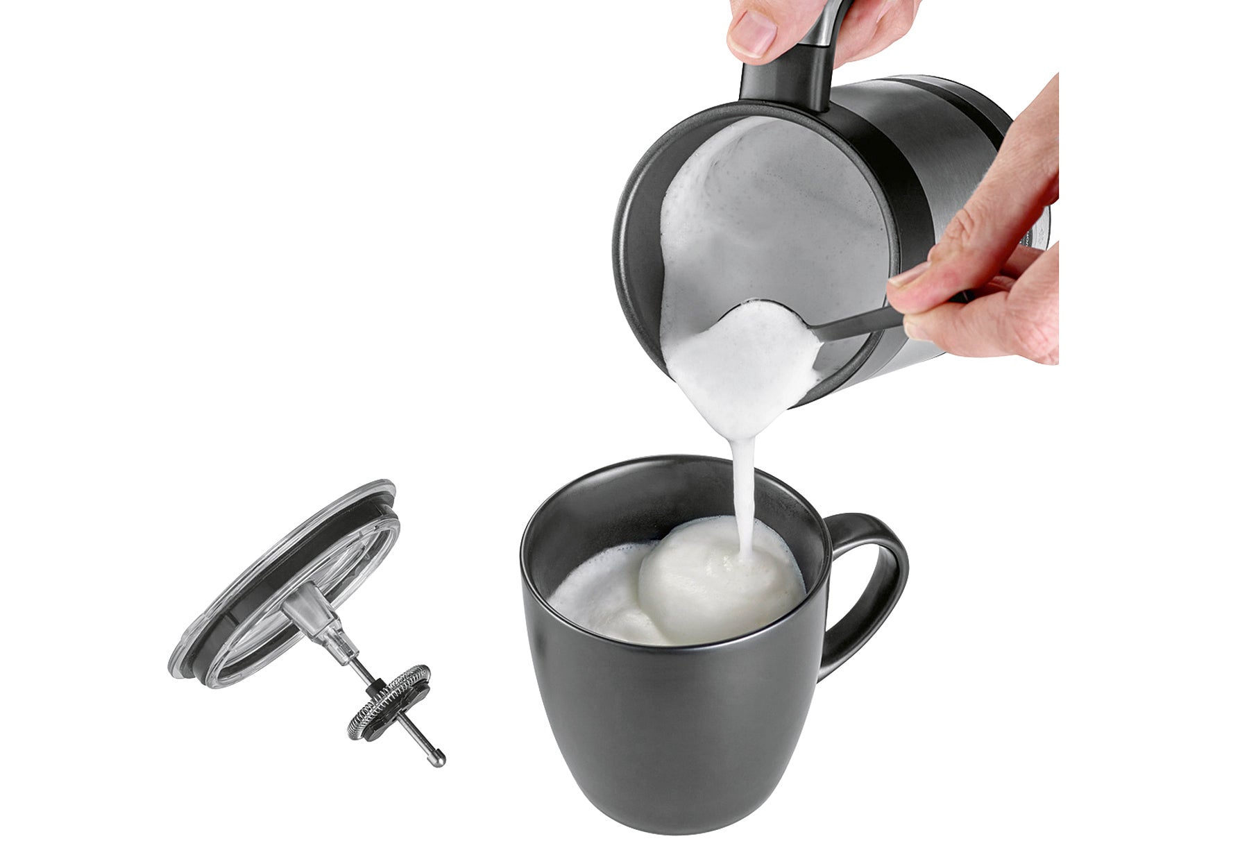 Kapazität: ca. 200 ml,zwei Milchschaum-Programme für unterschiedliche Milchschaummengen, zum Aufschäumen von ca. 100 ml oder Erwärmen von ca. 200 ml Milch, 360° System: Milchbehälter aus jeder Richtung aufsetzbar, geeignet für kaltes und warmes Aufschäumen und zum Erhitzen von Milch, antihaft-beschichteter Behälter für eine leichte Reinigung Ein-Aus-Schalter, automatische Abschaltung, Überhitzungsschutz, Leistung: ca. 450 W