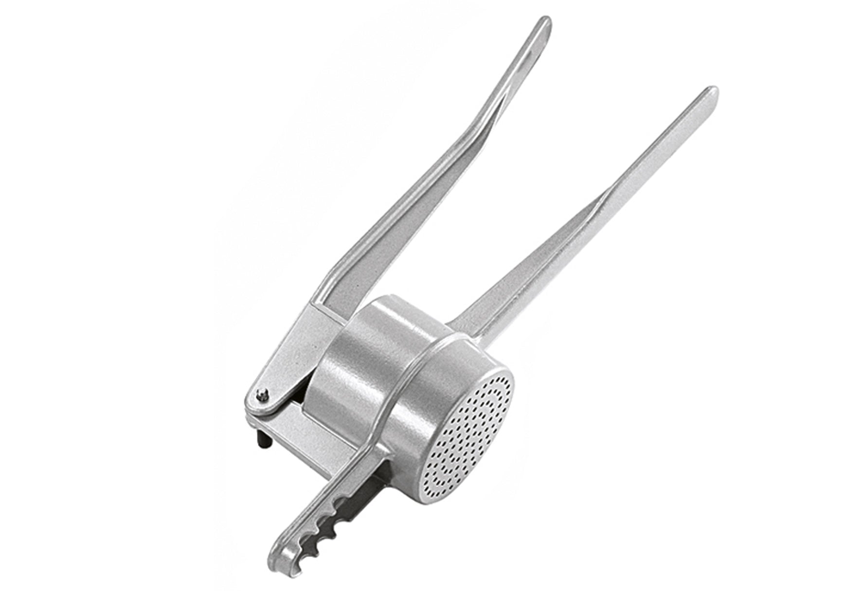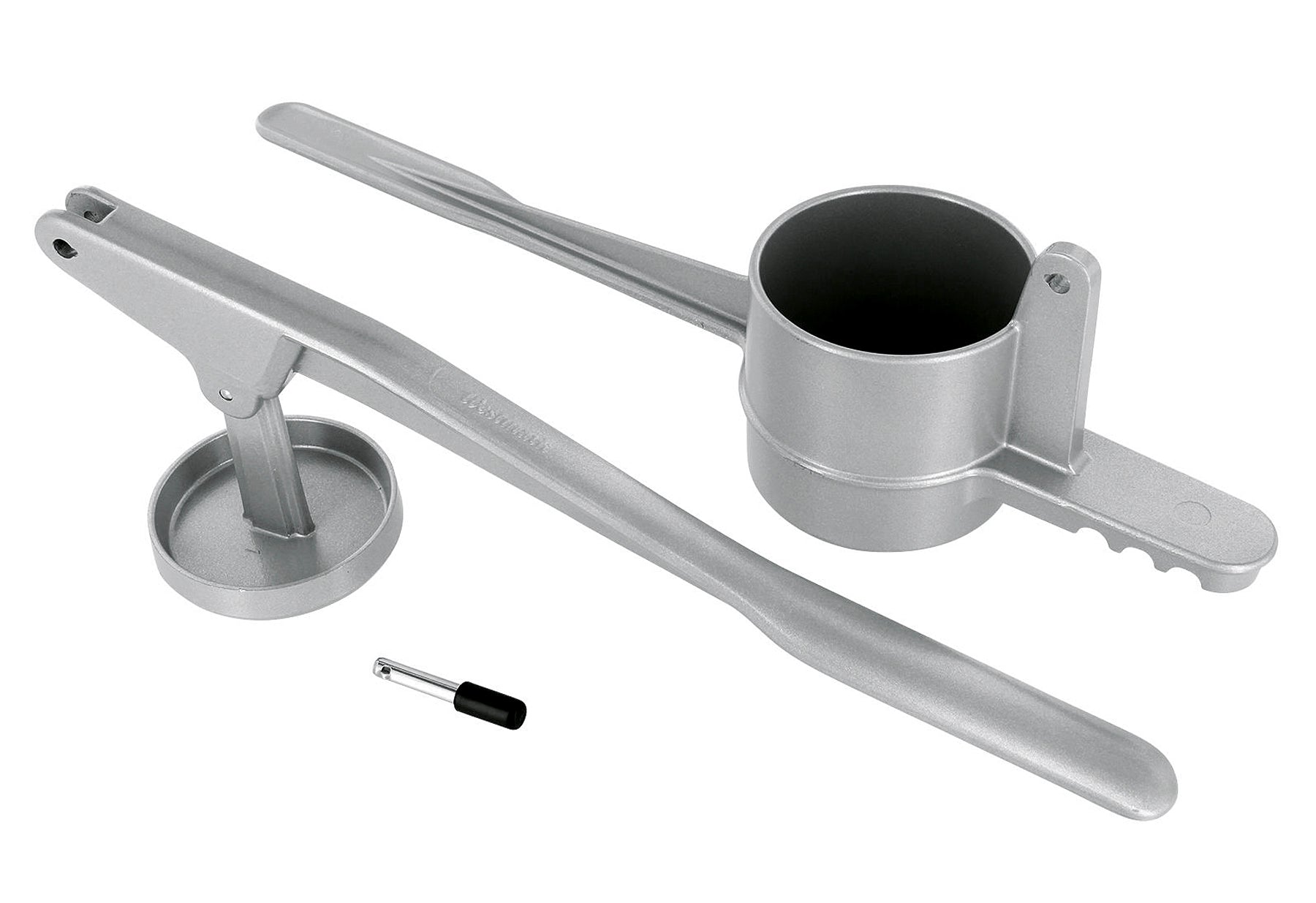 - Aluminium, beschichtet, Speziallochbild rund, großes Fassungsvermögen, auch einsetzbar als Presse für Obstsäfte, Kartoffelpüree und Spaghetti-Eis, zerlegbar zur leichten Reinigung, spülmaschinengeeignet