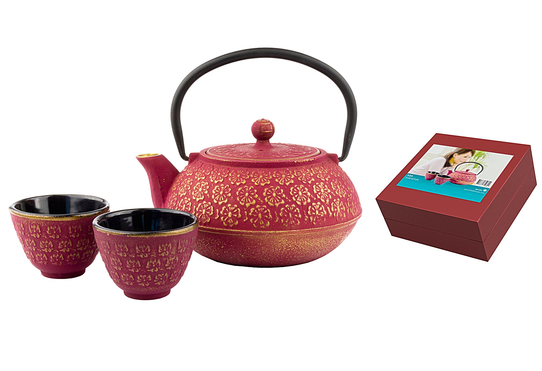- hochwertiges Gusseisen, emaillierte Innenseite, goldene Verzierungen, Inhalt: 1 Kanne 600 ml, 2 Teetassen, in schöner Geschenkverpackung