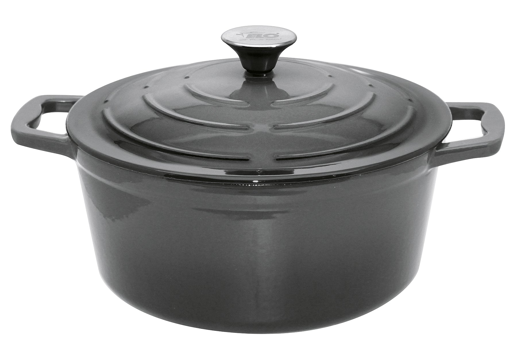 - Gusseisen / Deckel mit Edelstahlknauf, innen cremefarben emailliert, außen grau emailliert, Wandstärke ca. 3,8 mm, Bodenstärke ca. 4,5 mm, für alle Herdarten geeignet, scharfe und krosse Zubereitung, optimale Wärmeleitung, backofenfest bis 240°C, säurebeständig, leicht zu reinigen, spülmaschinengeeignet
