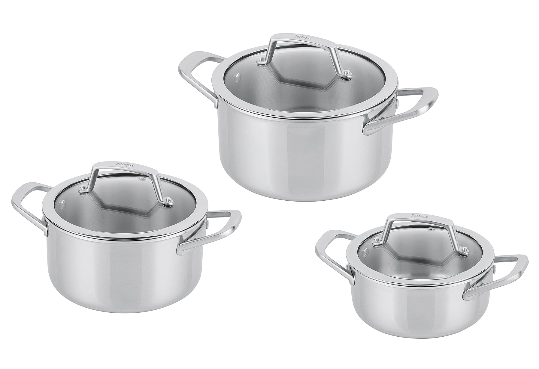 - Edelstahl mit Glasdeckel, Inhalt: jeweils 1 x Topf 1,4 l, Ø 16 cm, H 12,5 cm / 2,3 l, Ø 18 cm, H 15,2 cm / 3,3 l, Ø 20 cm, H 16,5 cm, für alle Herdarten geeignet, kompatibel mit Ø 13 cm, 15 cm, 17 cm Induktionsring, ofenfest bis 315 °C, spülmaschinengeeignet