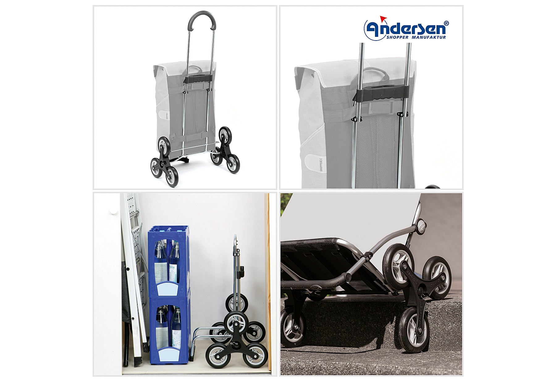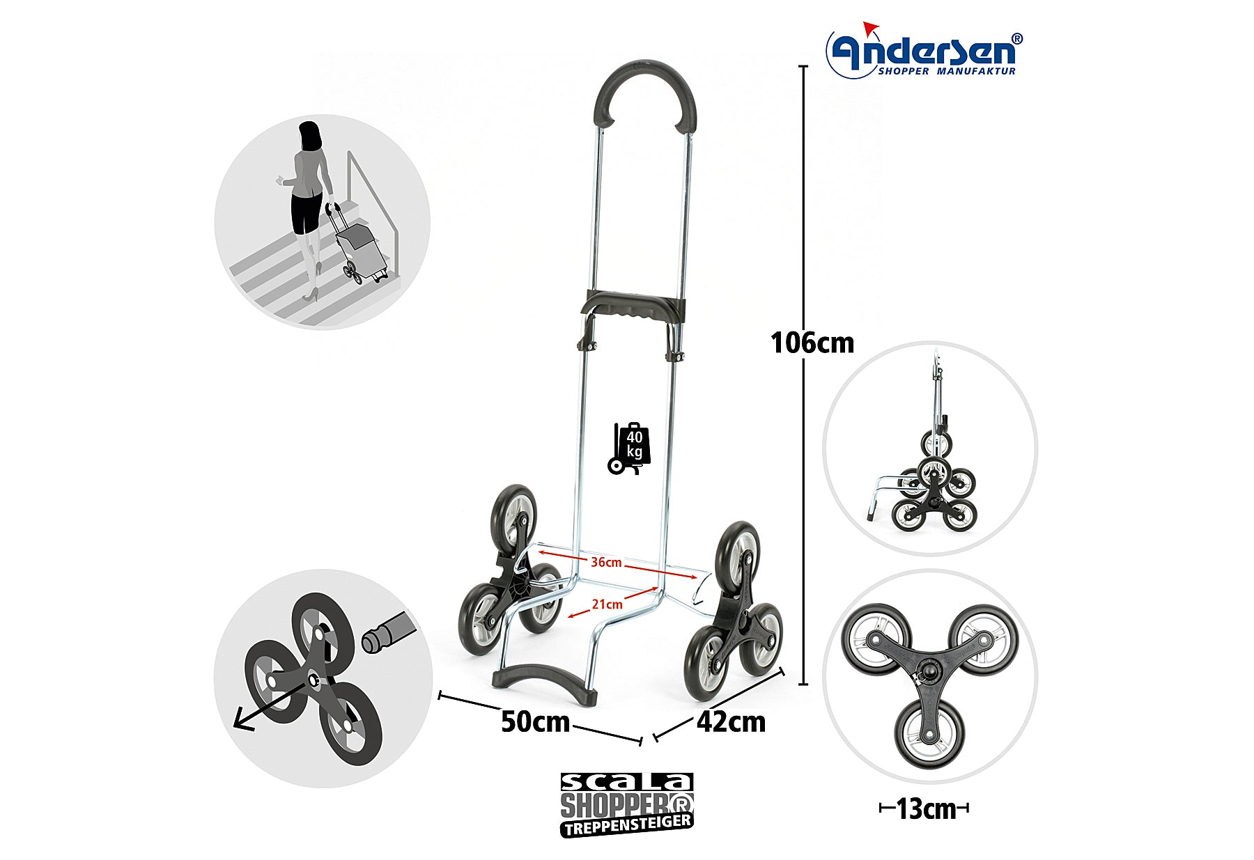 - Stahlrahmen, faltbarer Griff, Räder leicht abnehmbar, Leichtlaufräder, Spurbreite 50 cm, Raddurchmesser 13 cm, Fahrgestell Höhe 106 cm, Gewicht Fahrgestell 2,5 kg, Fahrgestelltragkraft 40 kg, Tasche: Reflektoren, Seitentasche, Innentasche, wasserabweisend, Tasche leicht abnehmbar, (BxHxT): 35x59x23 cm, Gewicht 0,9 kg