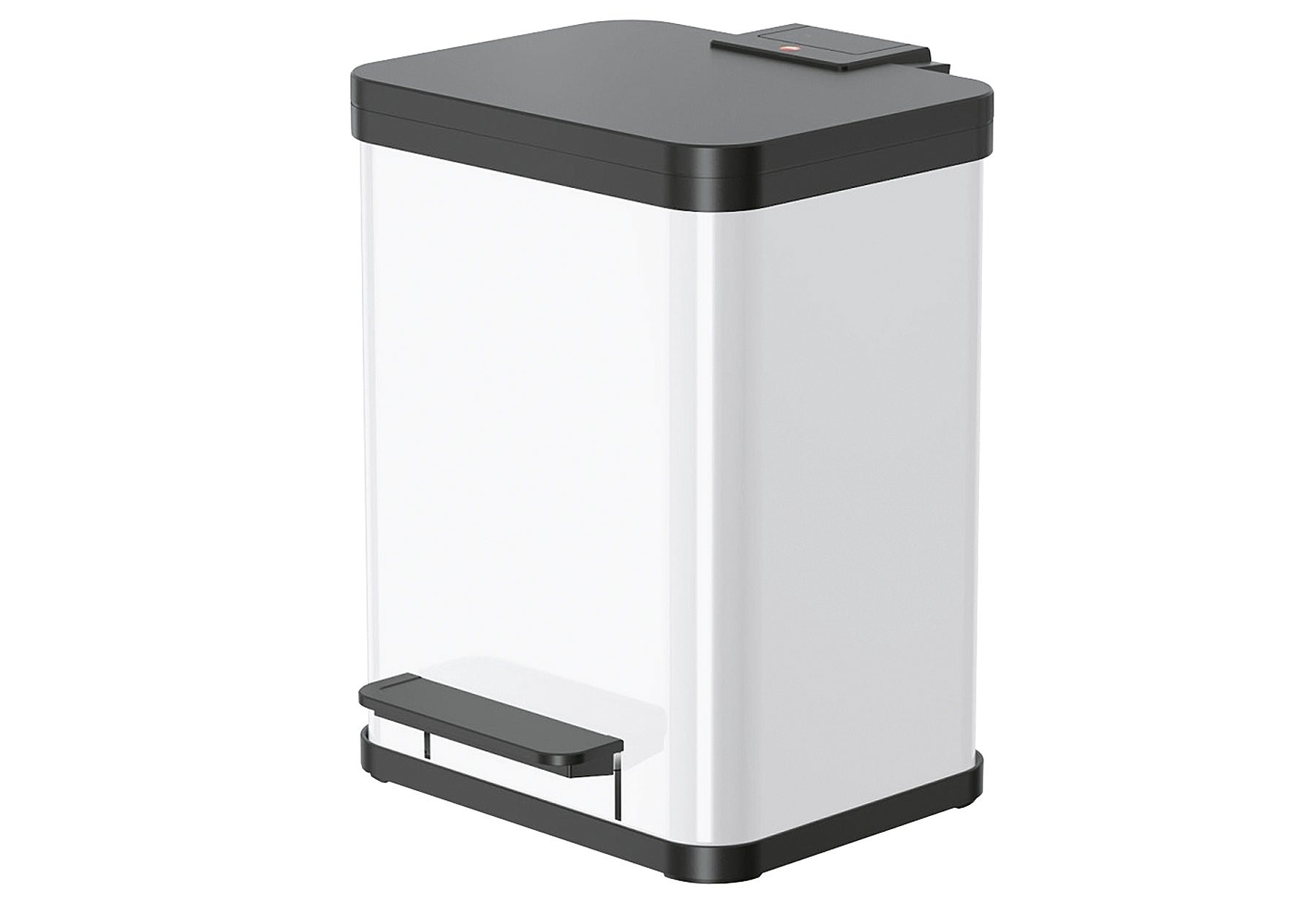 - Stahlblech / Kunststoff, gedämpfter Deckel-Schließ-Mechanismus (Soft close), ergonomisch breites Fußpedal, innenliegende Tretmechanik, Inneneimer aus 100% recyceltem Kunststoff