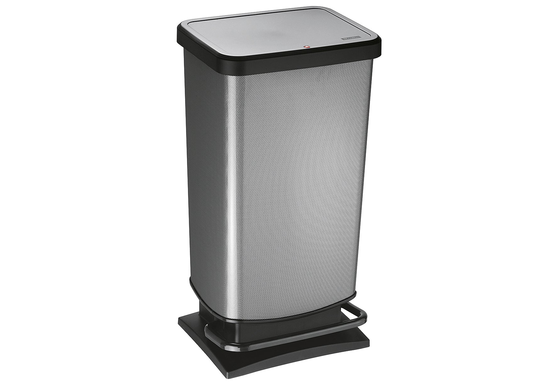 - flexibler Kunststoff, recyclebarem Behälter, Metallic-Look, optimierten Oberflächenmaterial, Inneneimer herausnehmbar, Gummifüsse, Pedal für sanftes und geräuschloses Schliessen