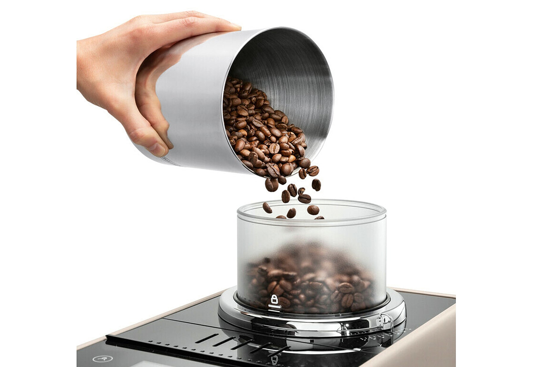 - 16 Kaffee- und Milchgetränke, Bean Switch System mit 2 auswechselbaren Bohnenbehältern, Integrierte Bean Adapt Technology, Farbiges 3,5 Zoll Fulltouch-TFT-Display mit interaktivem Bedienfeld, 4 umfangreiche Profile mit Kaffeeroutinen, LatteCrema Hot mit automatischem Reinigungssystem, Funktion "Extra Shot" für einen zusätzlichen Koffeinkick, 5 Stärkegrade, 4 Größen, 3 Temperatureinstellungen, Integriertes Mahlwerk mit externem Mahlgradregler mit 13 Einstellungen, Entnehmbare Brühgruppe für einfache Reinigung und Wartung, Leicht zugänglicher externer 1,4-l-Wassertank, Auswechselbarer 250-g-Bohnenbehälter in Maschinenfarbe (Lieferumfang umfasst 2 Bohnenbehälter, 1 in Maschinenfarbe und 1 in Schwarz), Leistung 1450 Watt, Schukostecker CEE 7/7